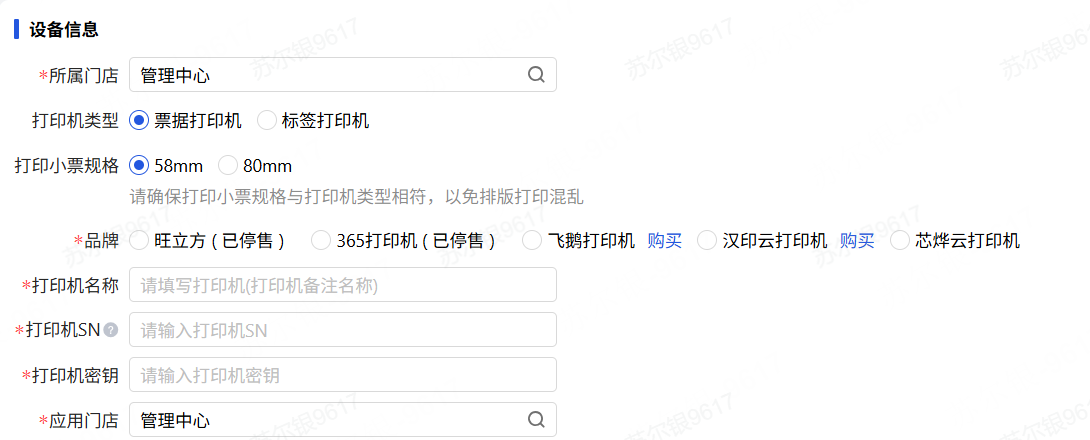 打印设备:选择门店要使用打印机