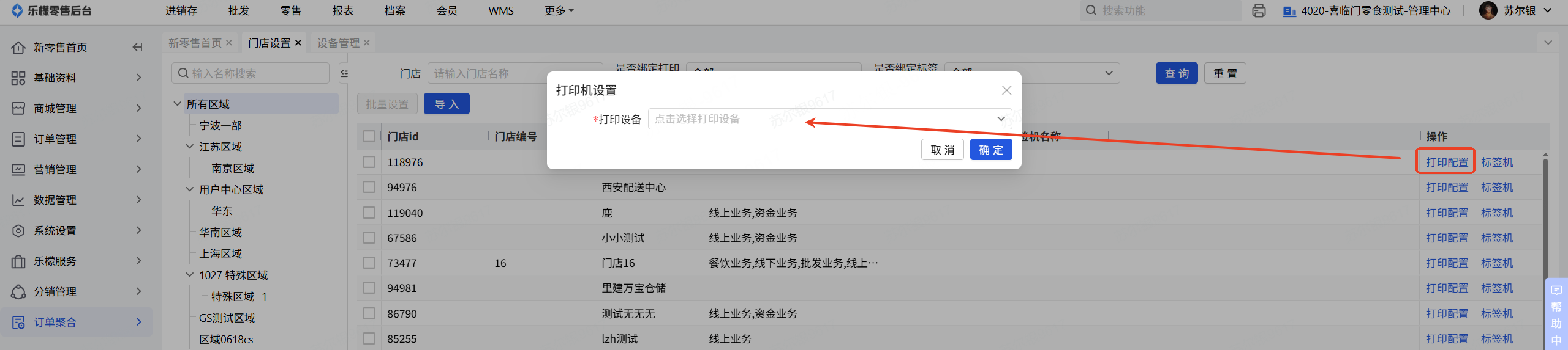 👉【操作路径】:订单聚合-云打印管理-门店设置-选择对应门店的打印机设置