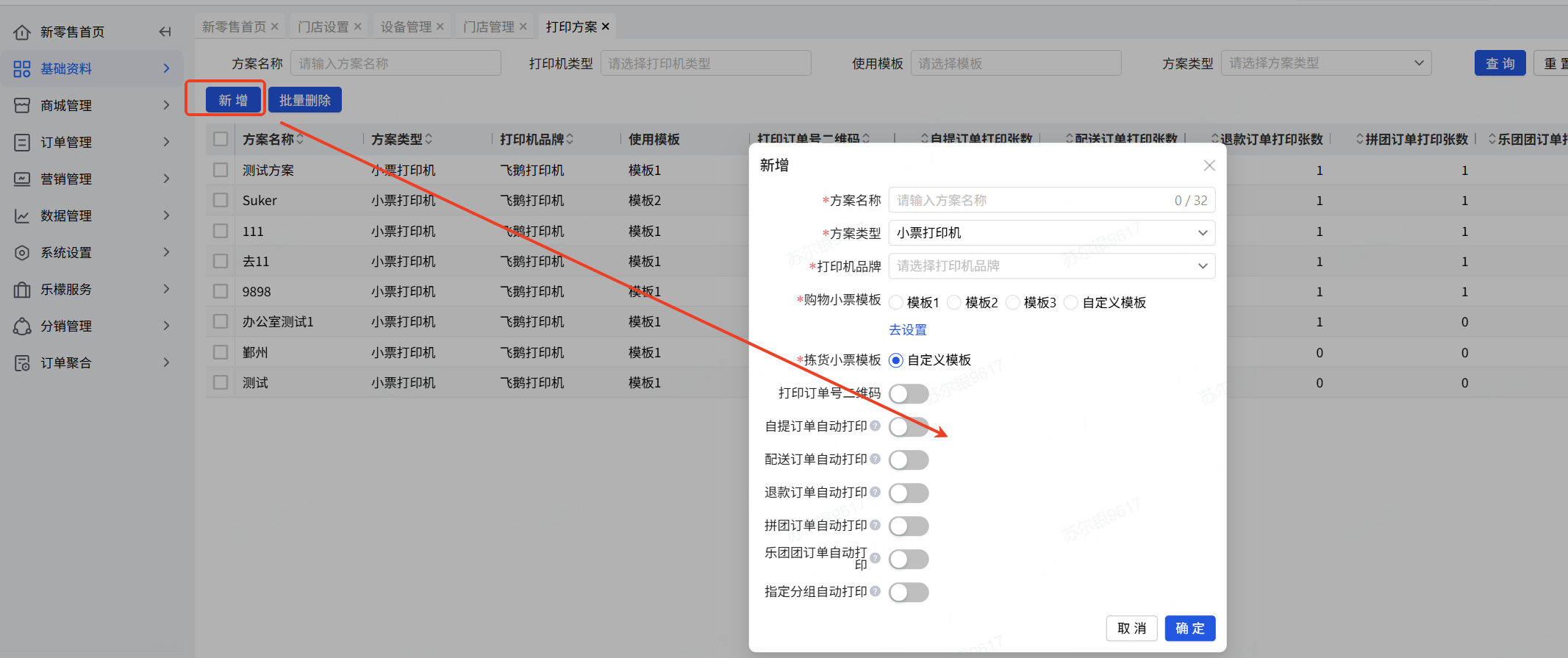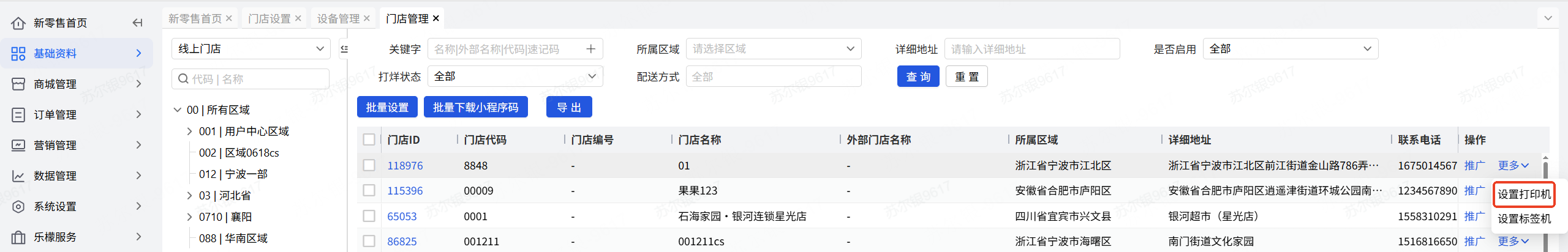 👉【操作路径】:新零售-基础资料-门店管理-更多-打印机设置