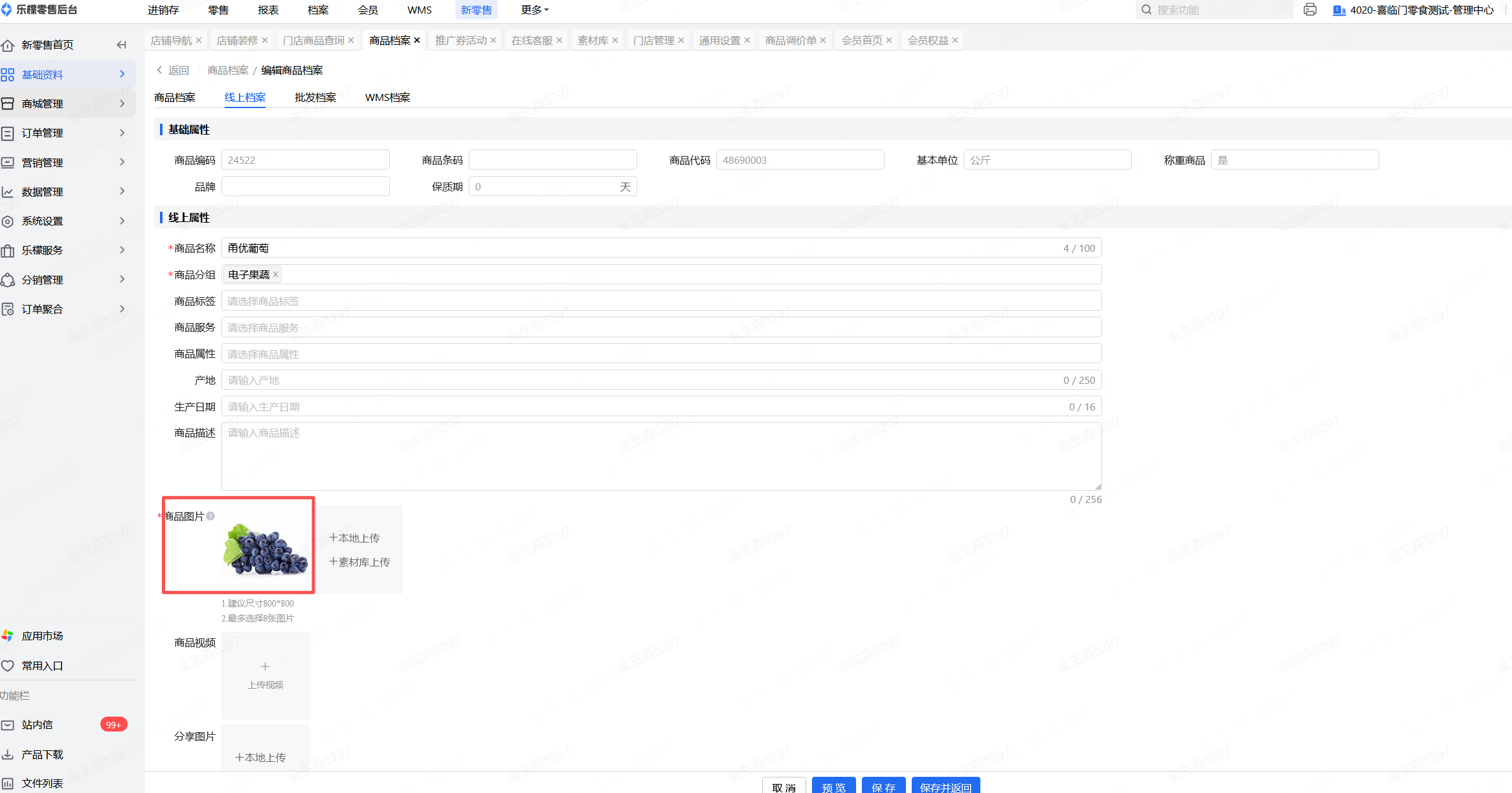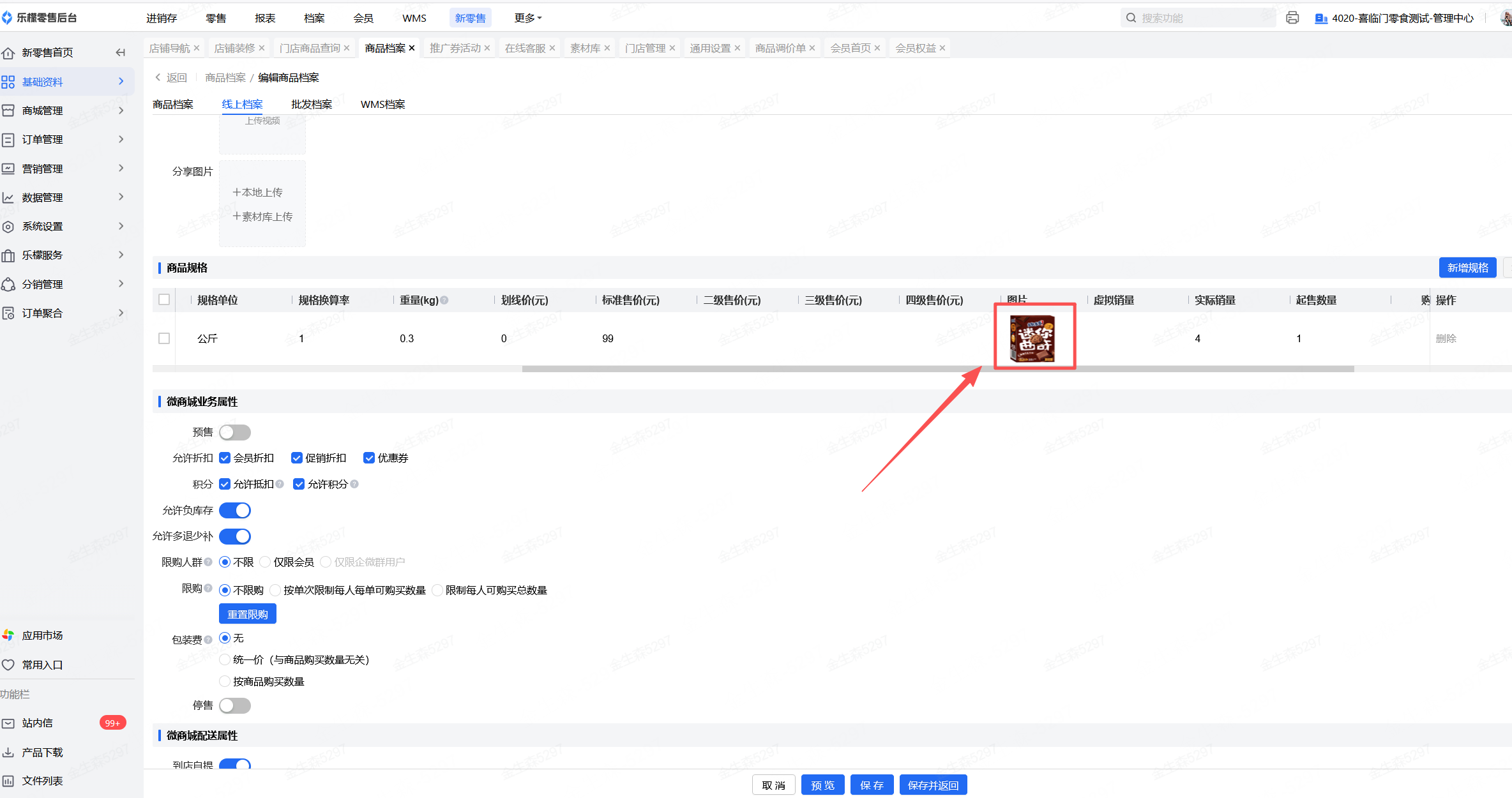 商品编码进去编辑商品信息,为商品添加主图图片,商品主图添加后,只是在小程序中,商品详情信息中显示商品图片