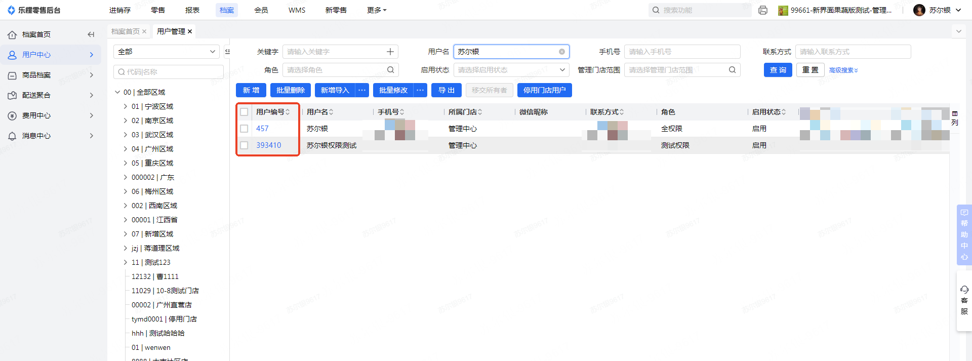用户A和B是同样的角色/同家门店,用户B部分单据查看不到。