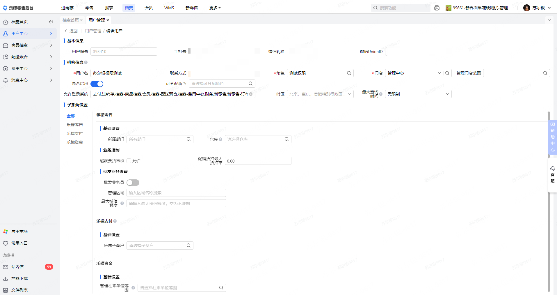 👉【操作路径】:1.档案-用户中心-用户管理,搜索到对应用户,点击用户编号进入,所属部门取消为空点击保存,保存后对应用户重新登录系统即可。