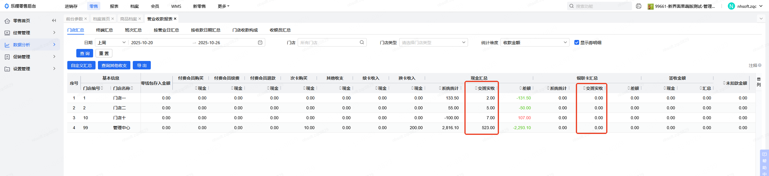 可在后台-零售-营业收款报表中查看收银员录入的现金金额是否与系统统计的现金金额有差异