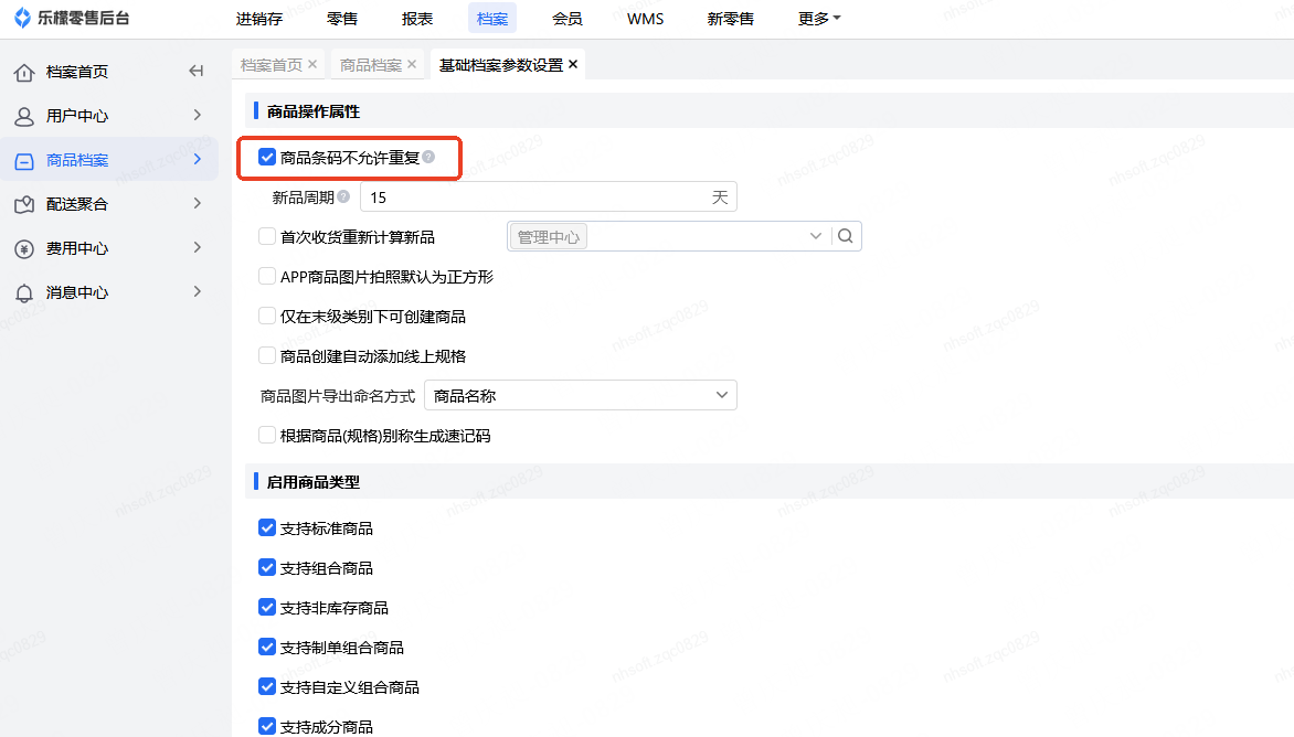 新增商品档案时,系统已经存在该条码,提示不允许条码重复。想设置两个商品条码一样,适用于一码多品