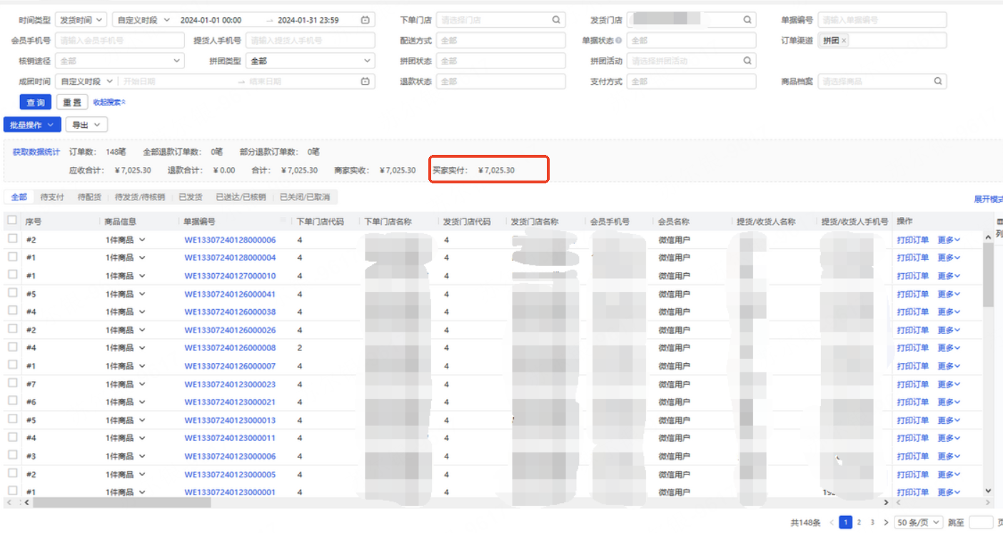 客户做拼团活动,通过app拼团分析和后台销售订单按拼团类型,发货门店和发货时间查看数据对不上
