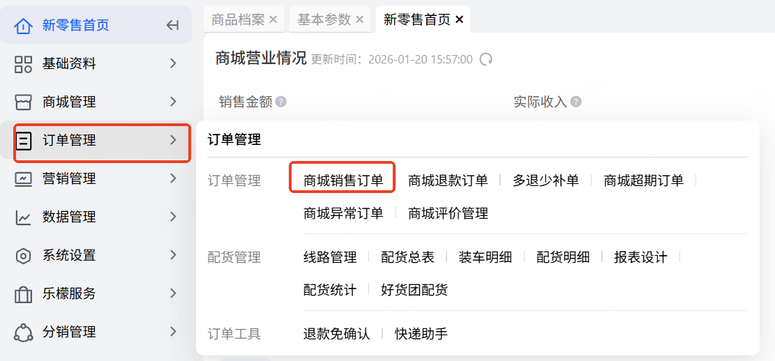 👉【操作路径】:新零售-订单管理-销售订单