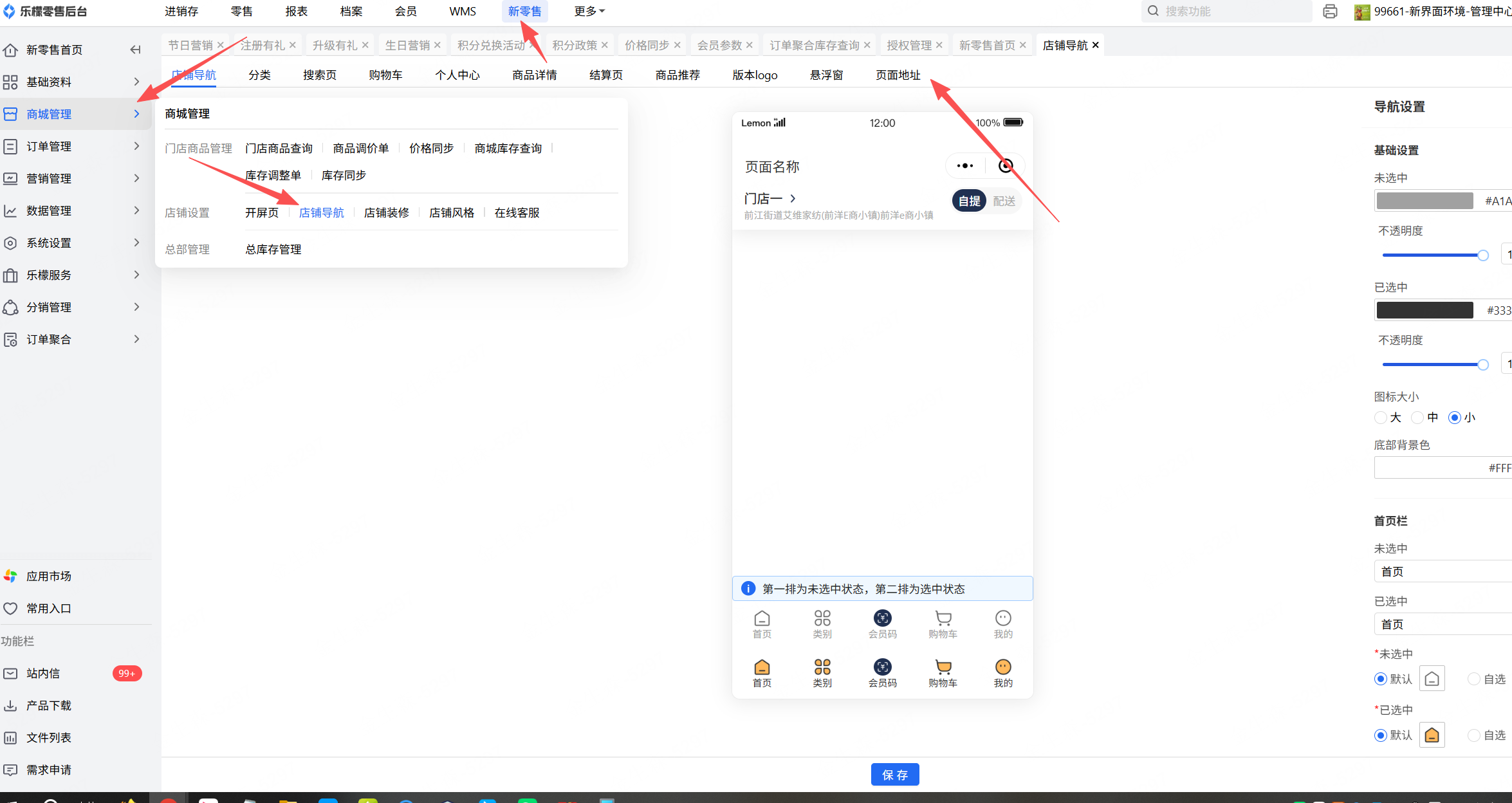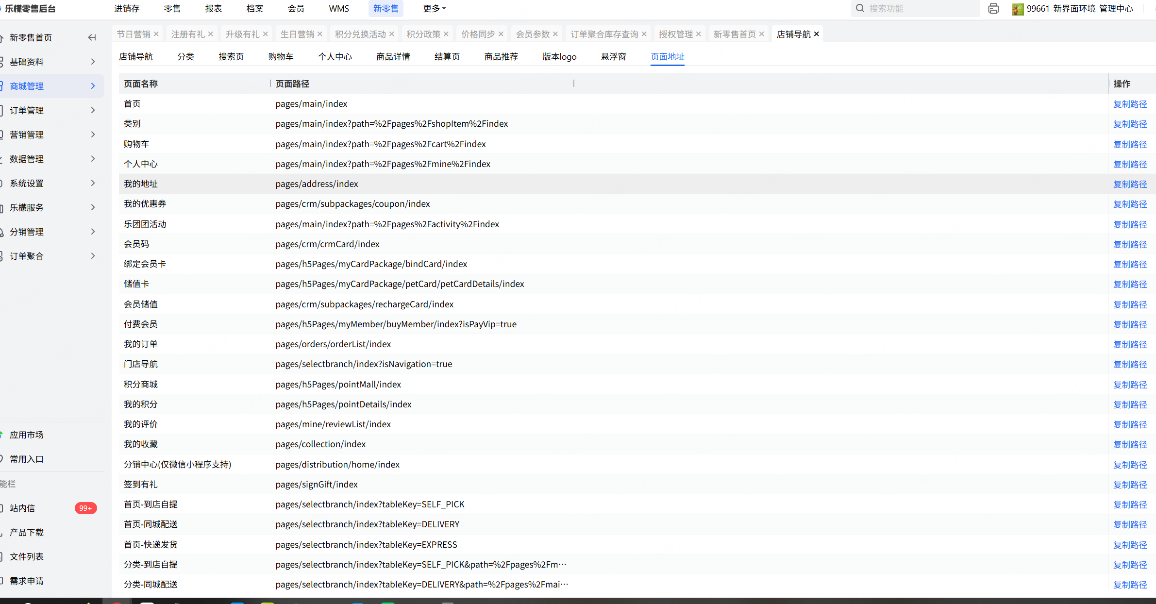 小程序菜单链接可在新零售-商城管理-店铺导航-页面地址中获取