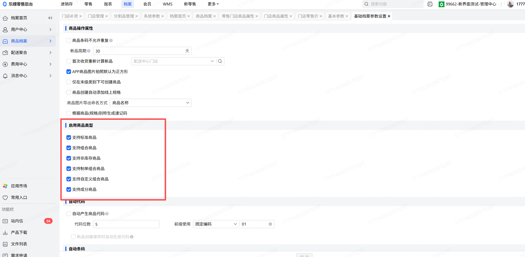 注意:存在库存的商品类型支持要货配送功能(除去自定义组合商品)