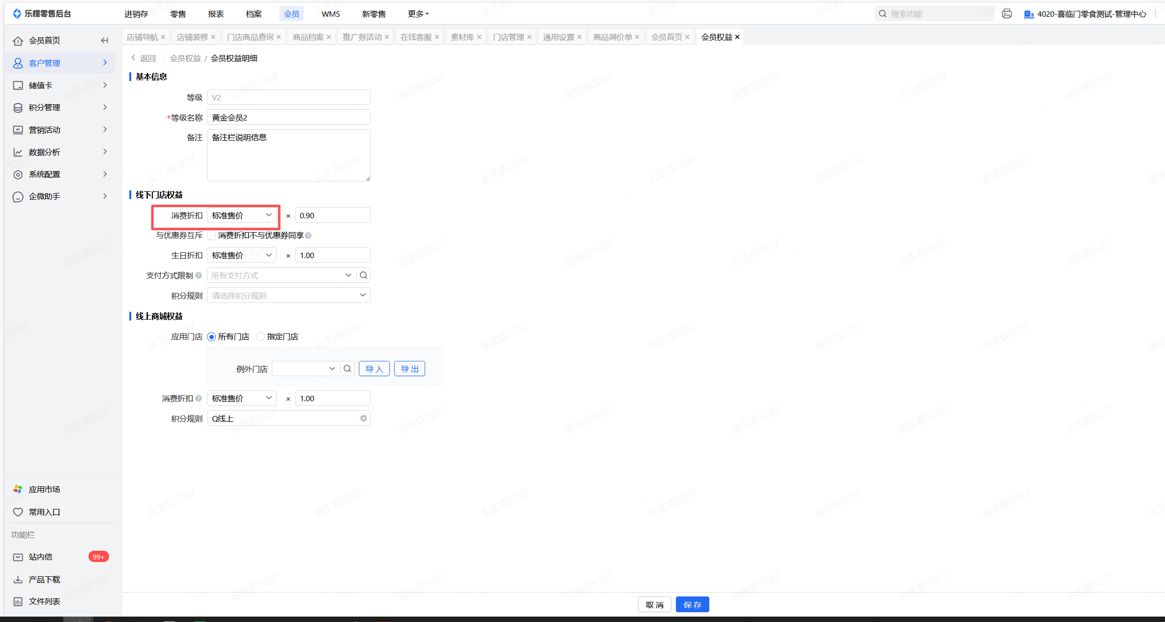 👉【操作路径】:会员-客户管理-会员权益