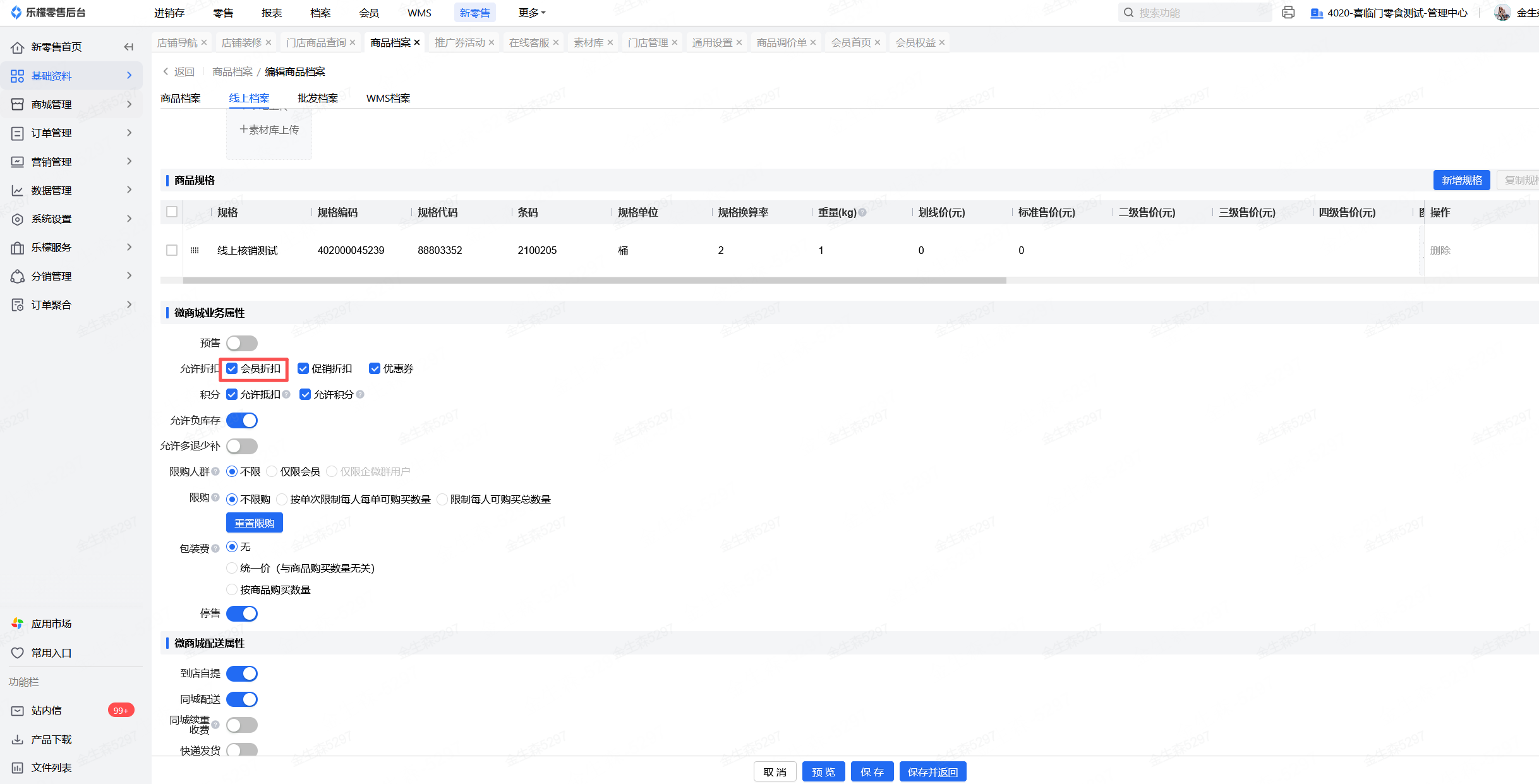 在等级详情界面找到“线上商城权益”将消费折扣设置成售价2