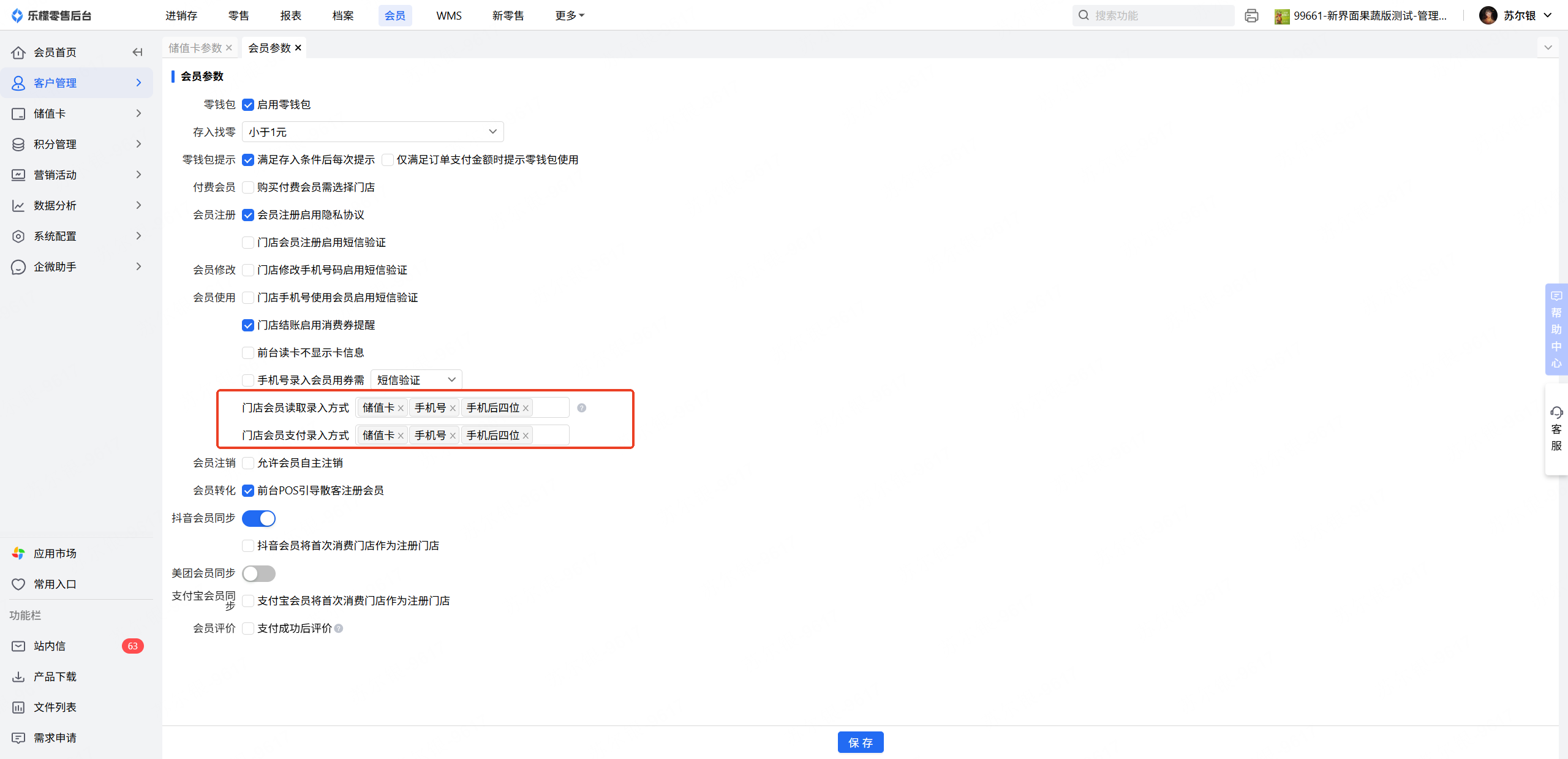 用于控制会员到店消费时,允许录入会员的方式,如允许卡号、手机号、手机号后四位录入,或仅支持手机号