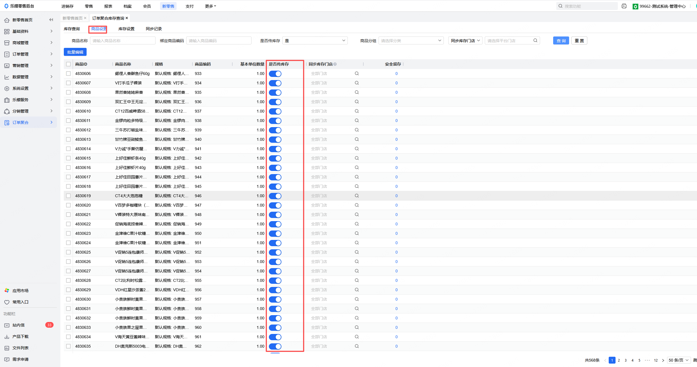 👉【操作路径】:新零售-订单聚合-订单聚合库存查询-库存设置