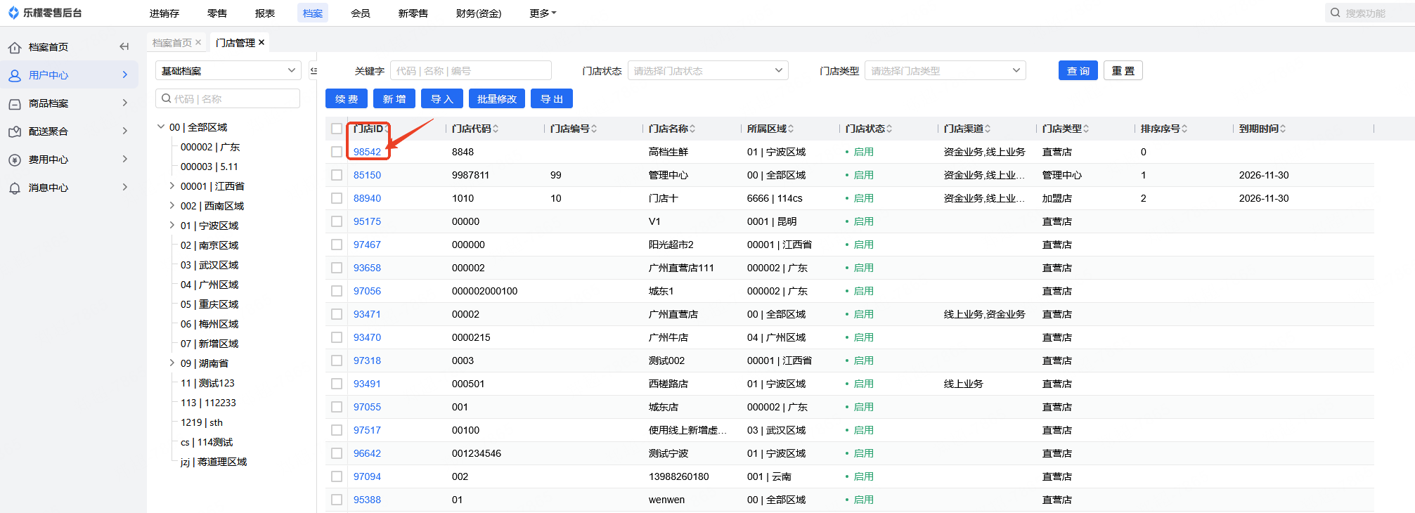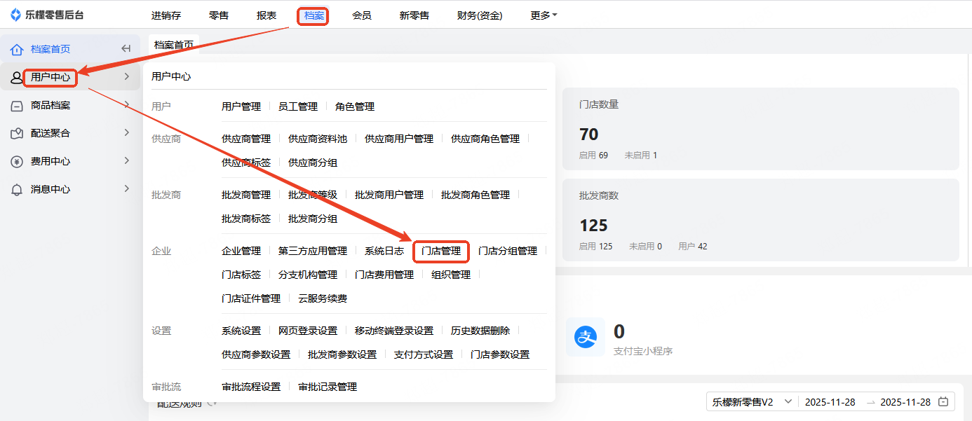1.登录乐檬零售后台,选择档案-用户中心-门店管理