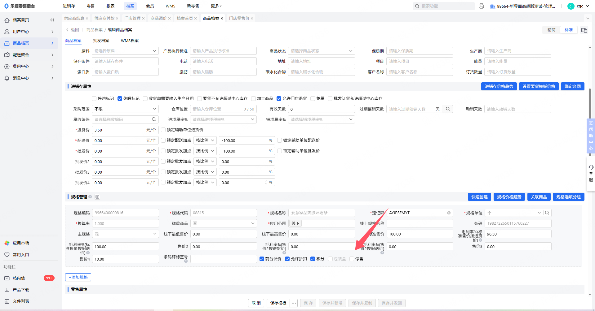 3.门店价格一但设置也是不会档案的价格走,要么关闭门店管理的-开启门店价格,要么把门店零售价里的门店价格清零
