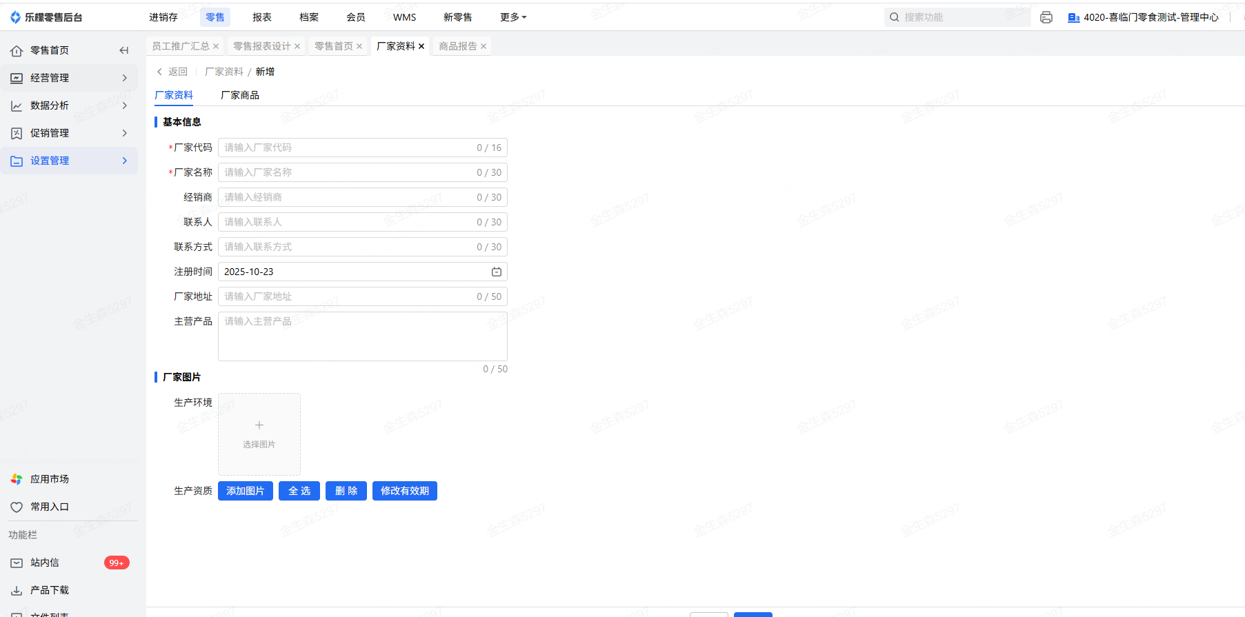 厂家资料,填写厂家信息和厂家商品等,也是有上传厂家方面的图片和资质等
