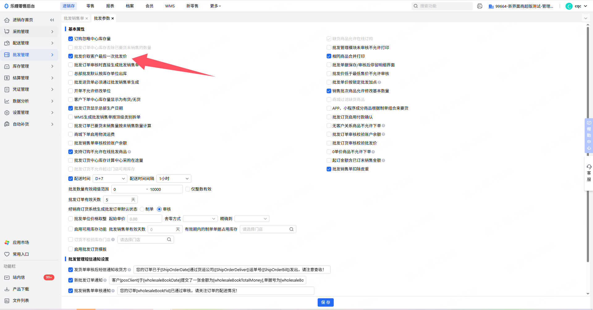 👉【操作路径】:进销存-批发管理-基础设置-批发参数-勾选批发价取客户最后一次批发价