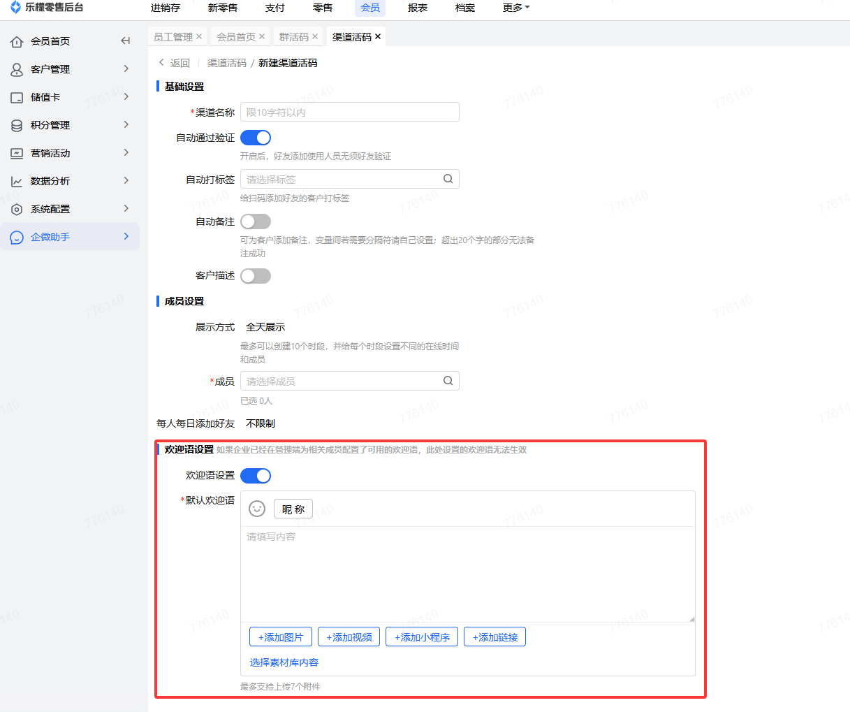 2.企微助手渠道活码欢迎语