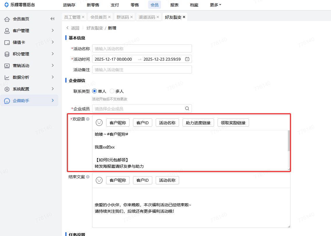 3.企微助手好友裂变欢迎语