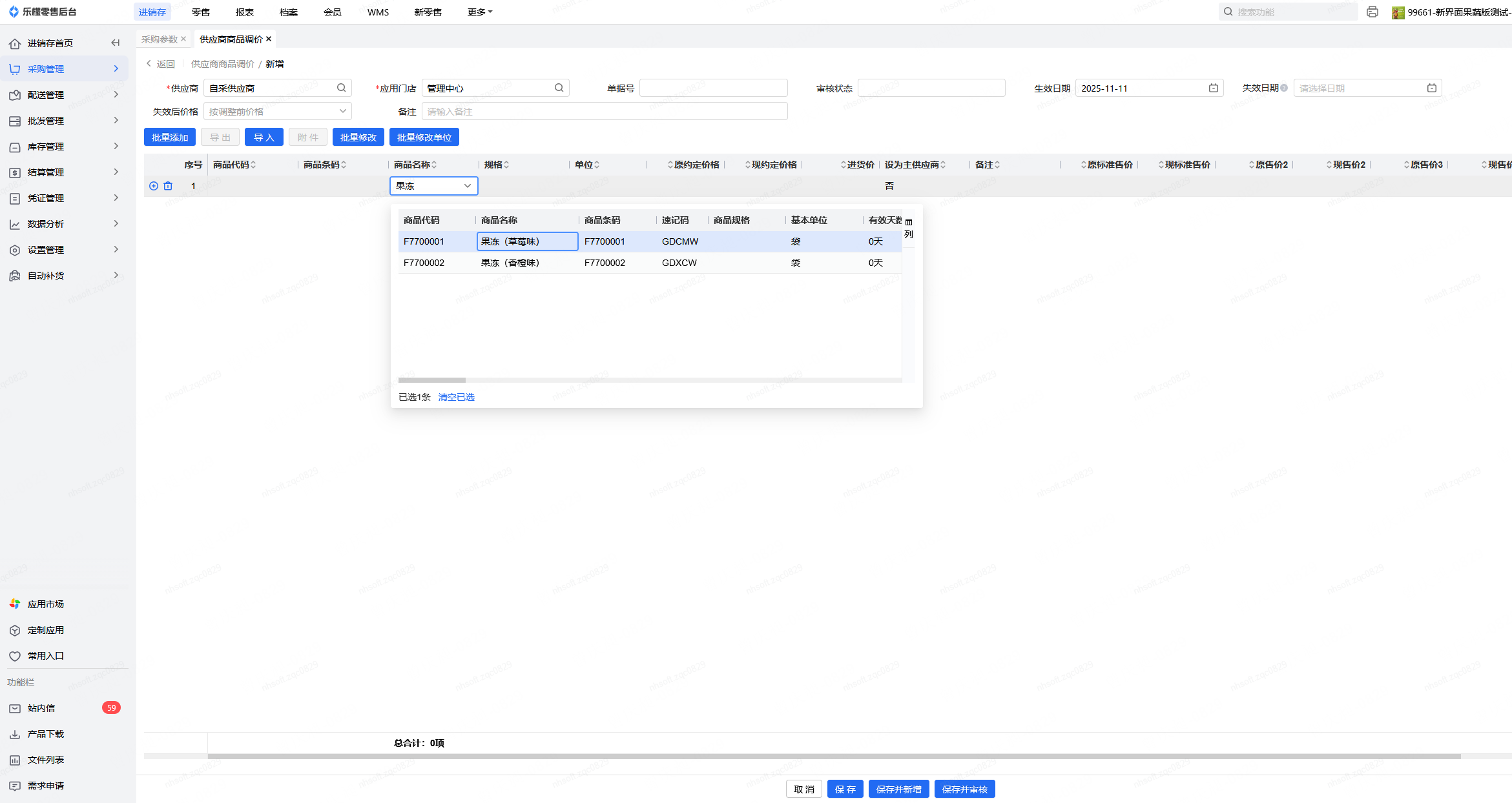 参数开启后,在订单明细界面直接键入商品时自动过滤无供货关系的商品