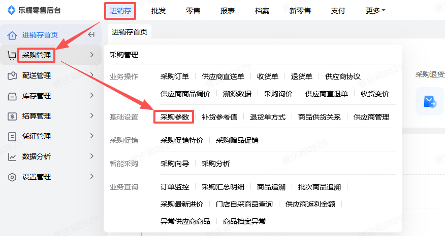👉【操作路径】:进销存-采购管理-采购参数
