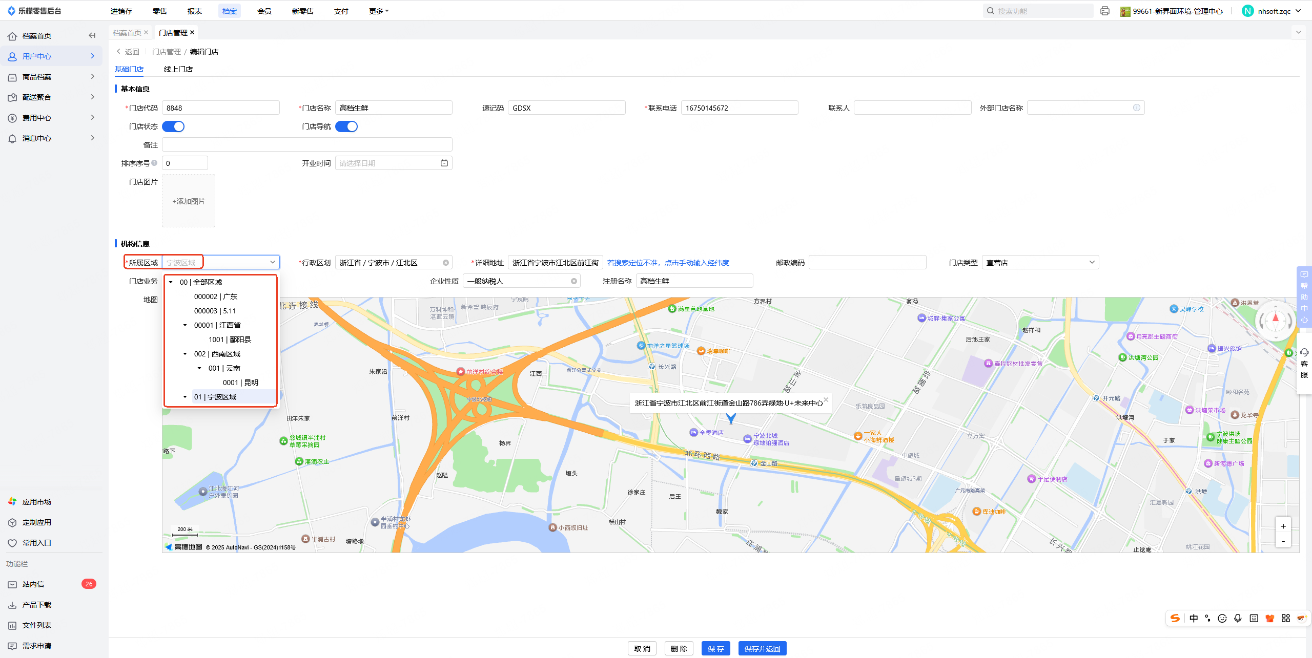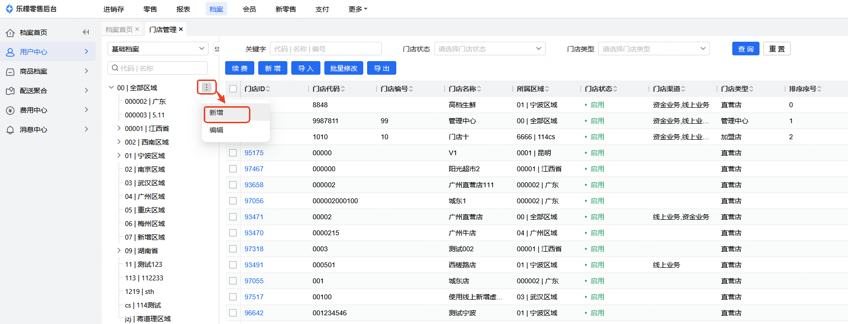 1、档案-用户中心-门店管理