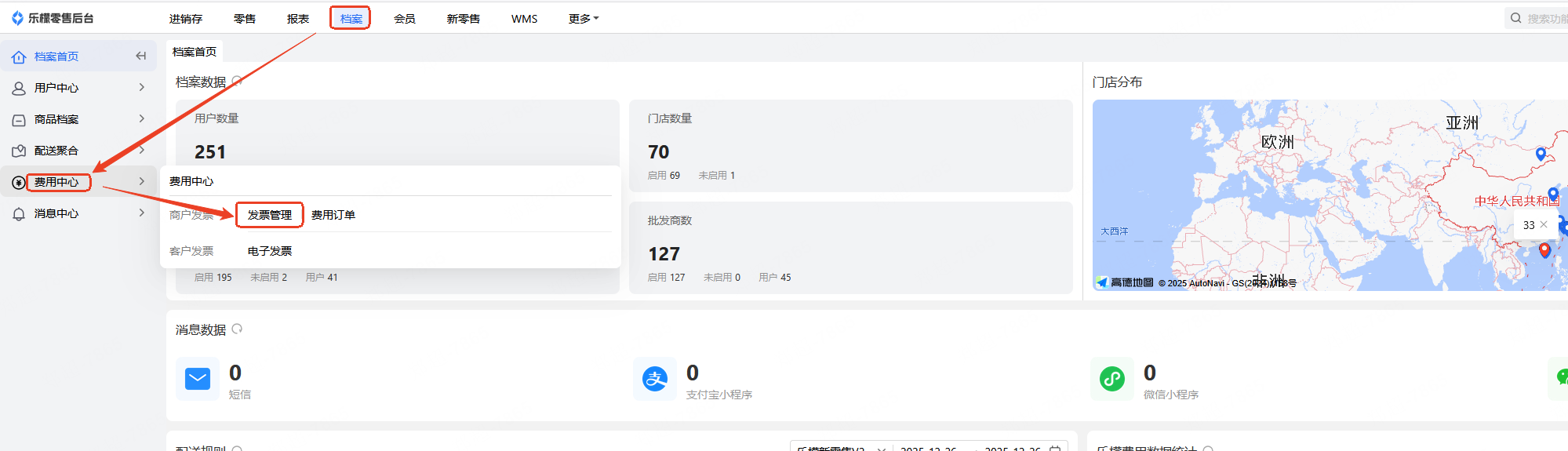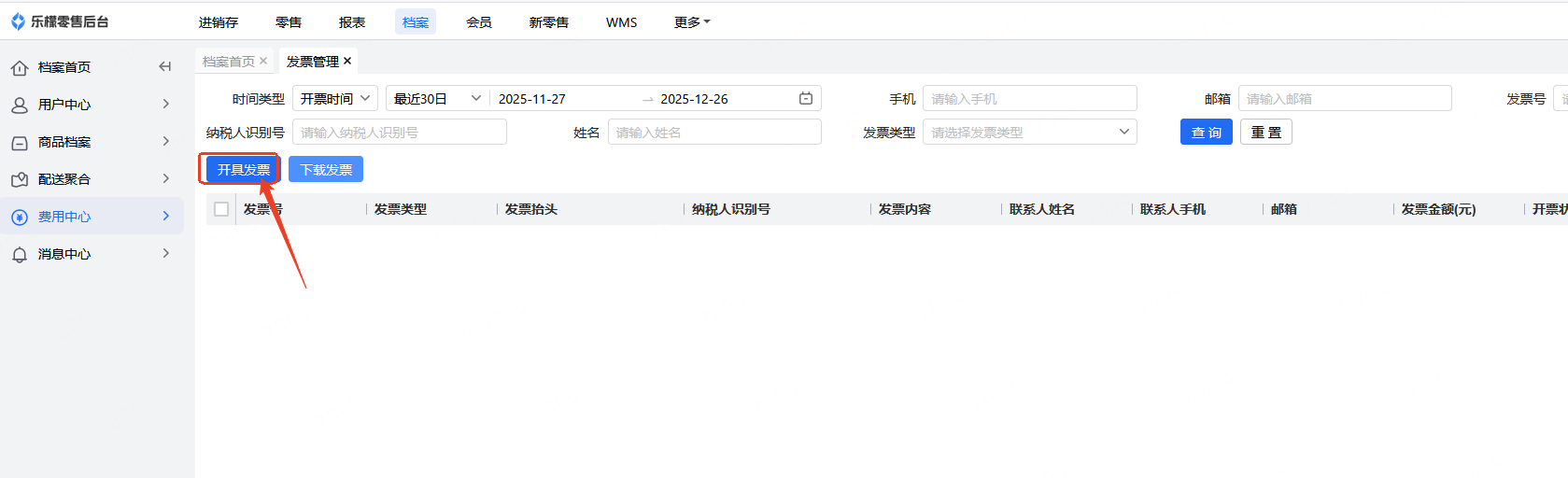 👉【操作路径】:档案-费用中心-发票管理-开具发票