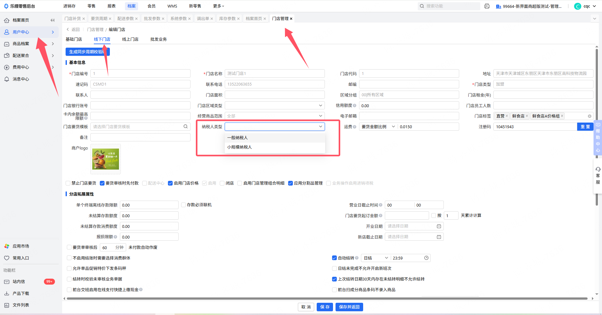 👉【操作路径】:档案-用户中心-门店管理-线下门店
