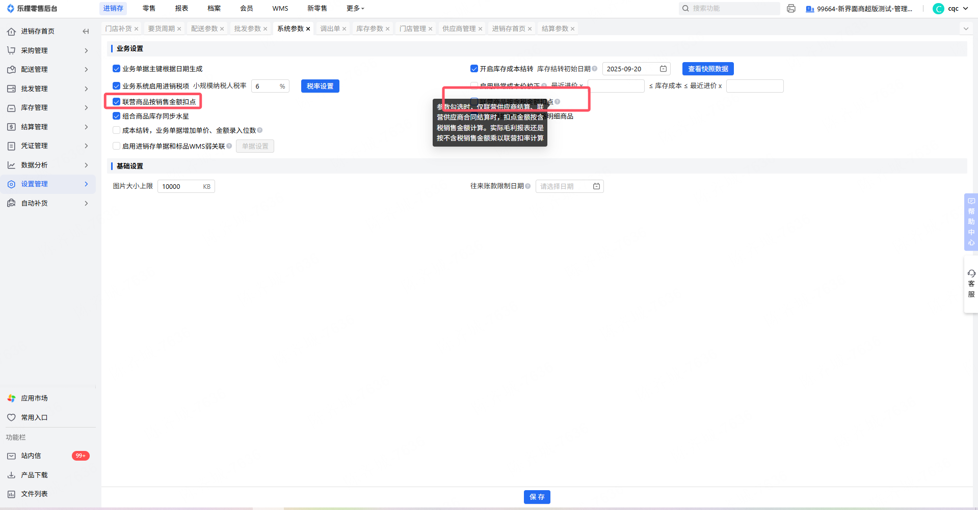👉【操作路径】:进销存-设置管理-基础设置-系统参数