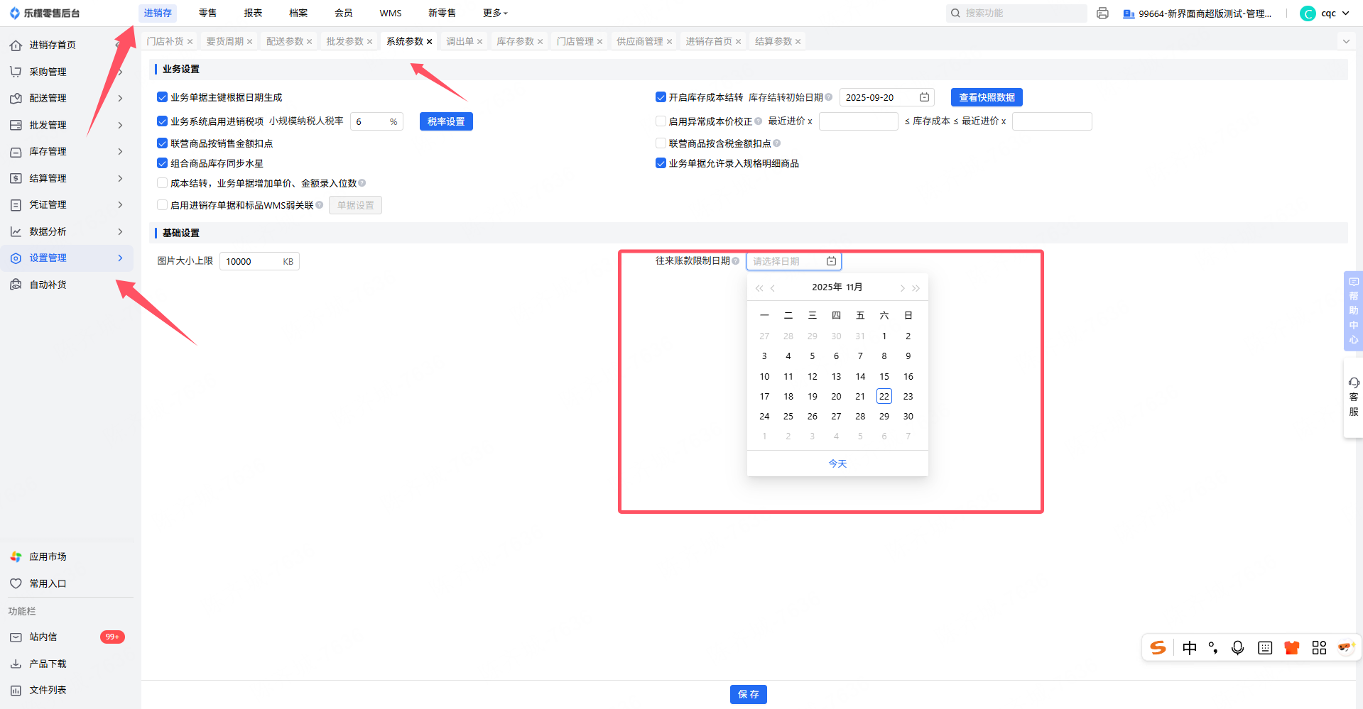 👉【操作路径】:进销存-设置管理-基础设置-系统参数