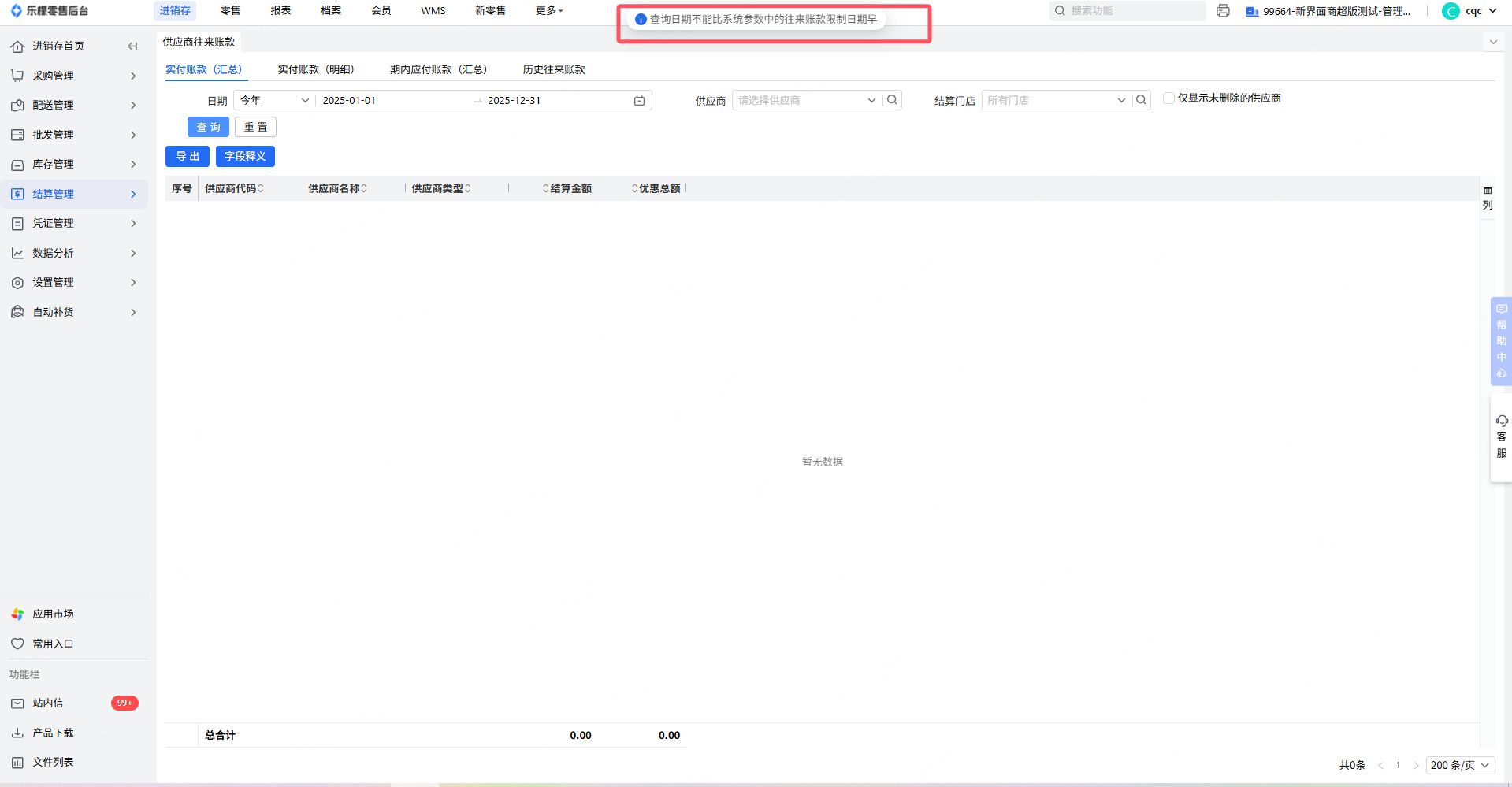 限制财务人员往来账款限制日期之前的往来账款信息(门店往来账款、供应商往来账款、客户往来账款)