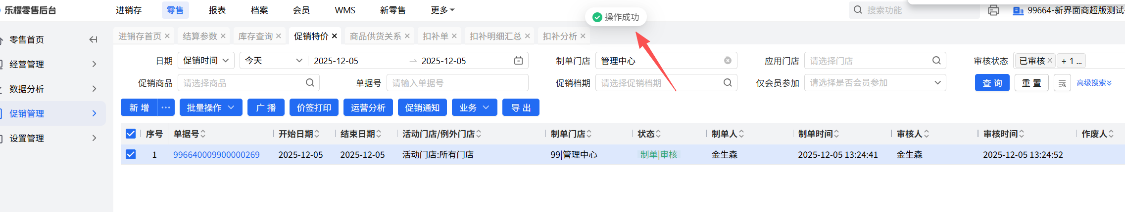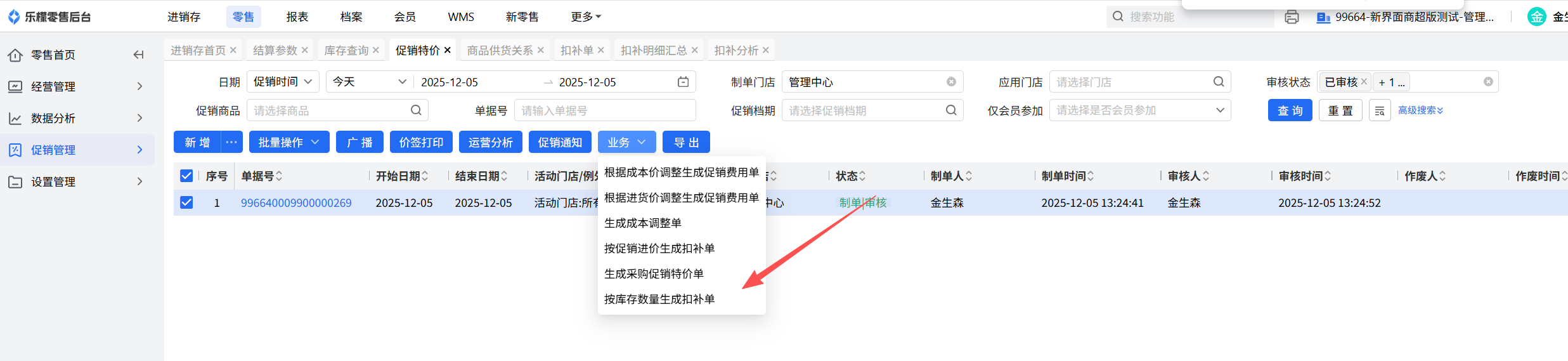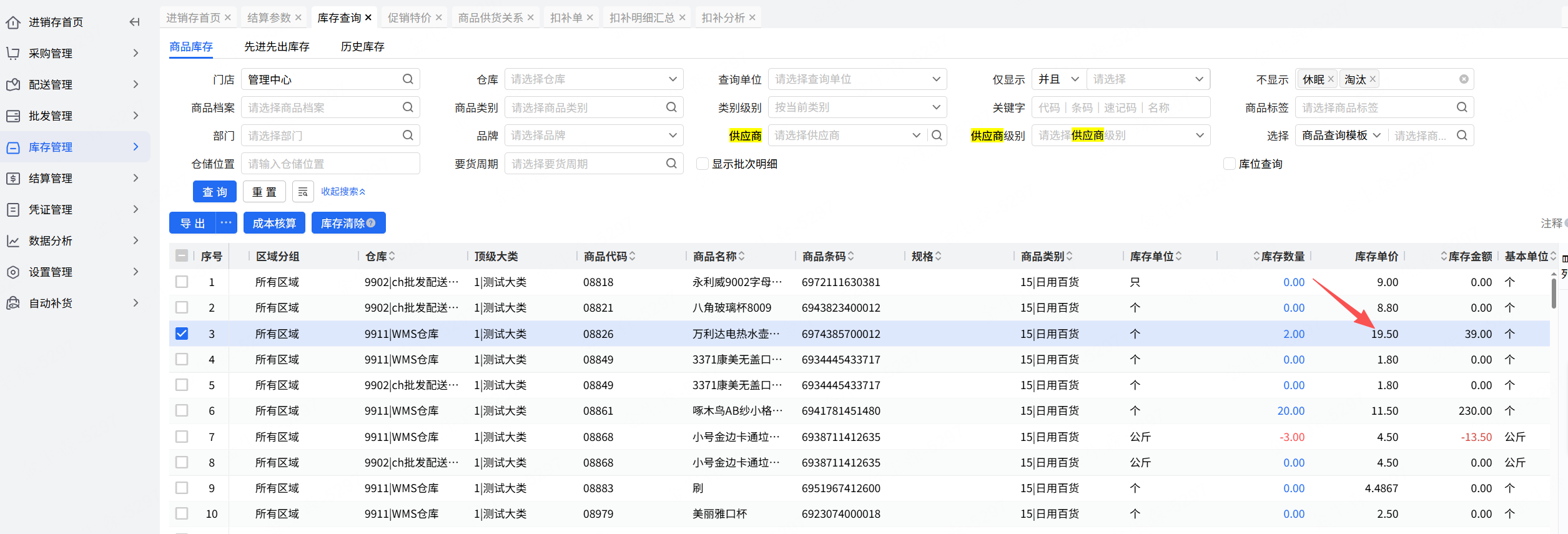 开启参数后,通过促销特价生成库存扣补单(仅商超)或者促销扣补单时,过滤库存成本单价小于等于促销进价的商品
