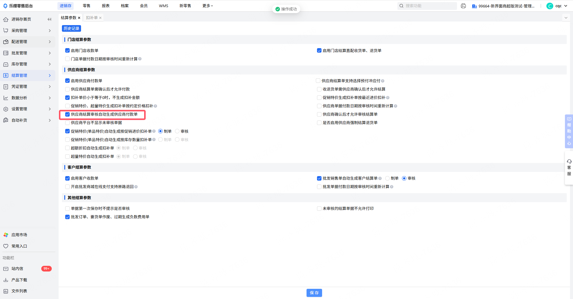 👉【操作路径】:进销存-结算管理-基础设置-结算参数