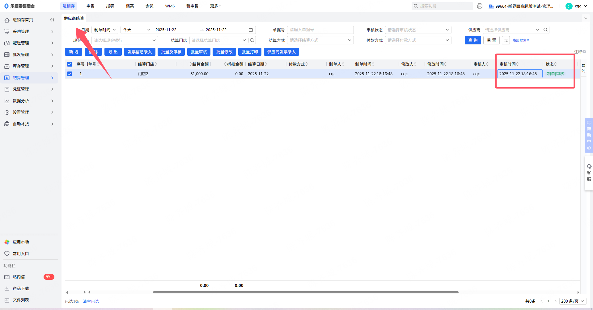 1.供应商结算模式为所属门店结算时:对应所属门店