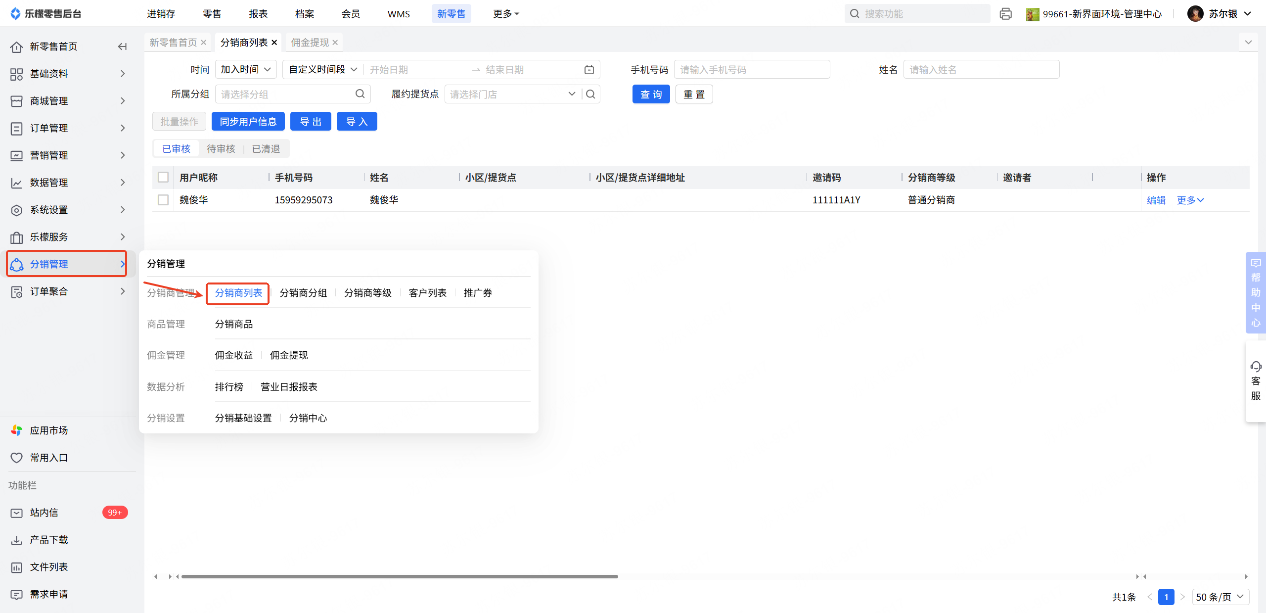 👉【操作路径】:新零售-分销管理-分销商列表