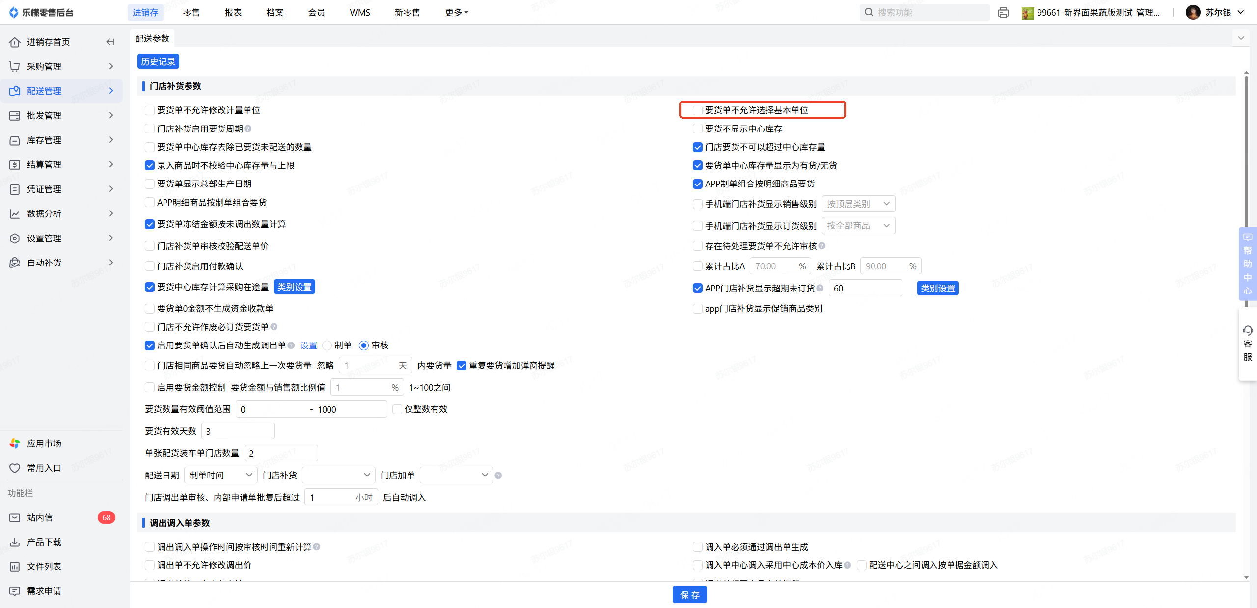 👉【操作路径】:进销存-配送管理-配送参数
