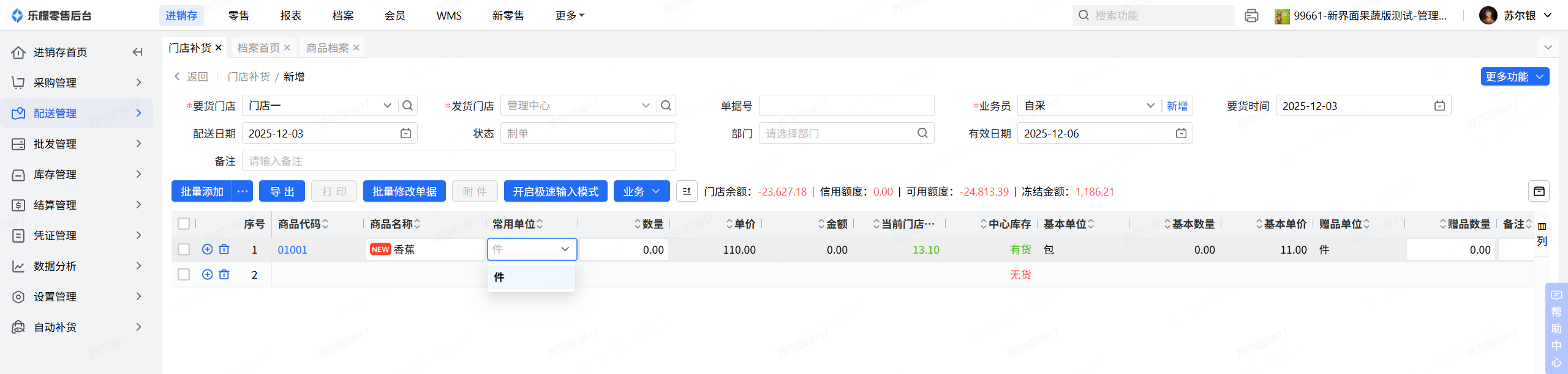 门店补货单审核校验配送单价