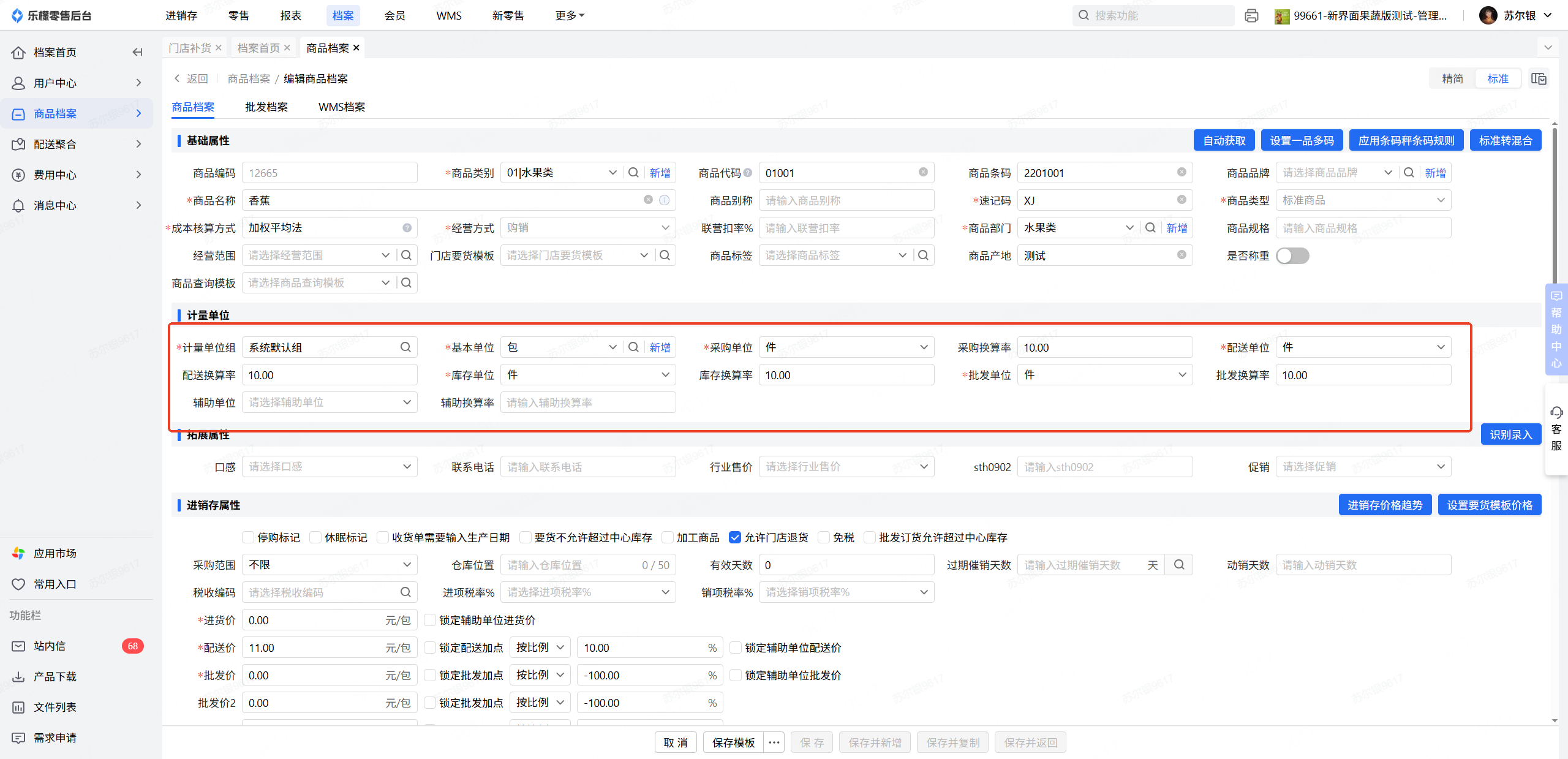 商品档案中的其他单位要与基本单位不一致