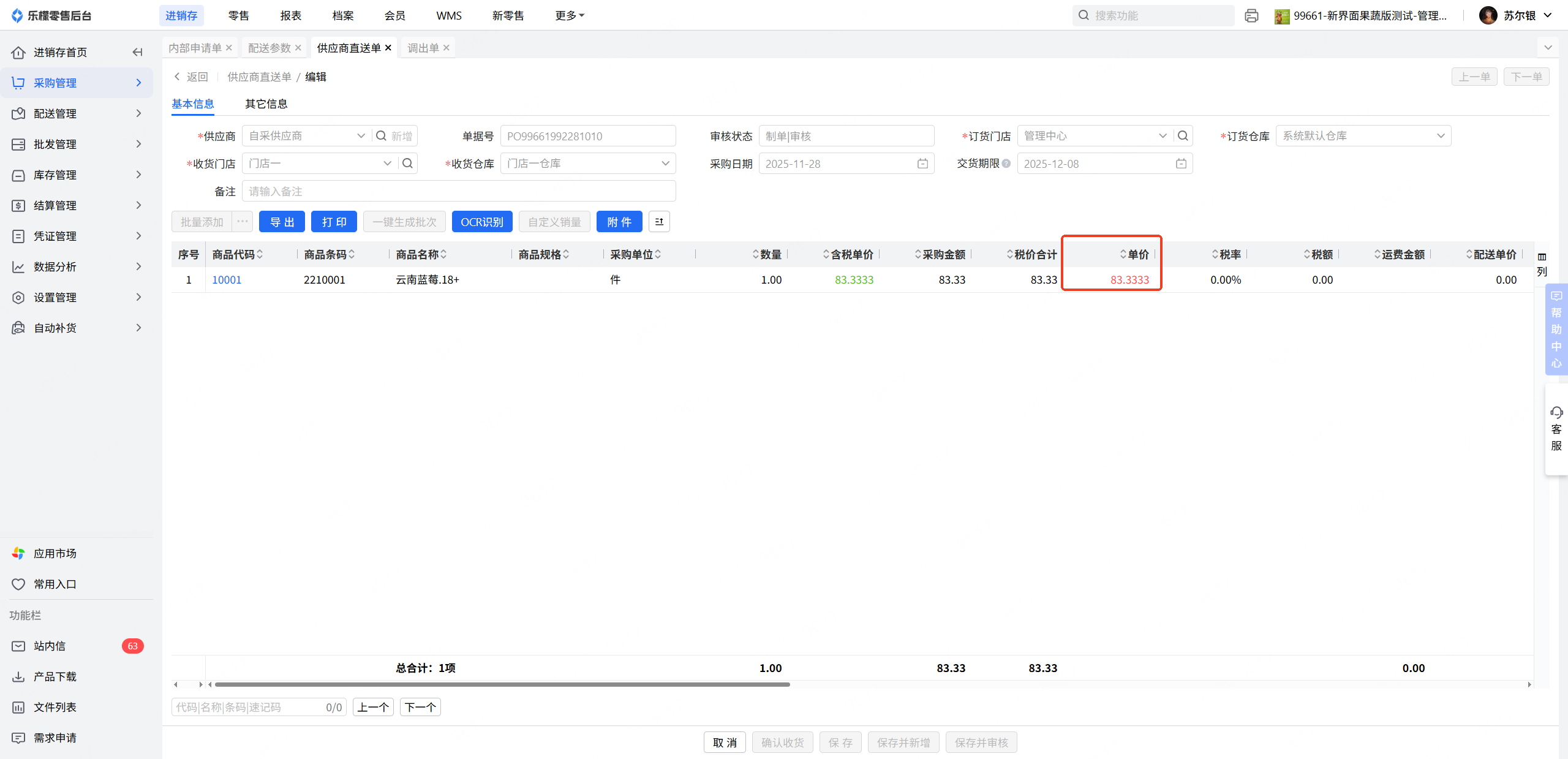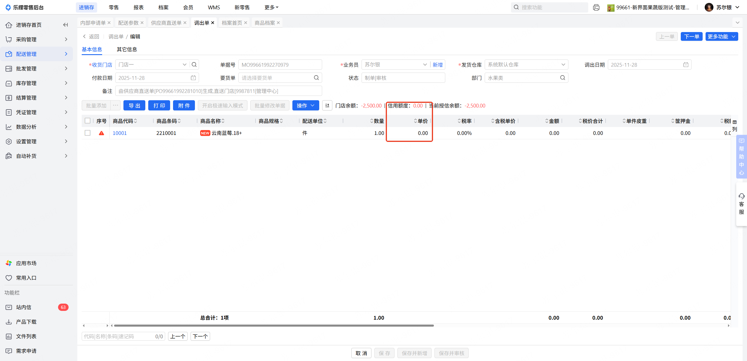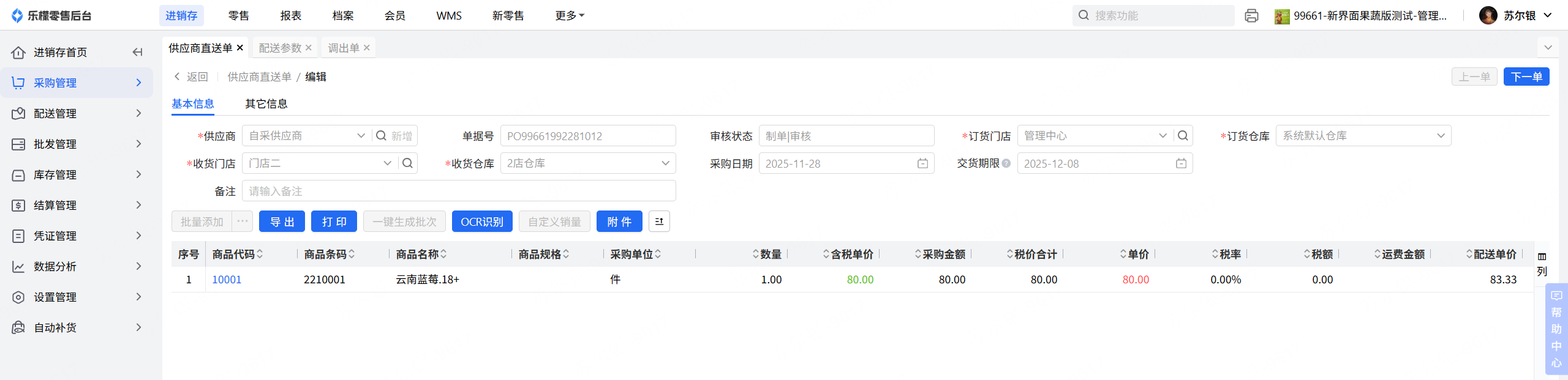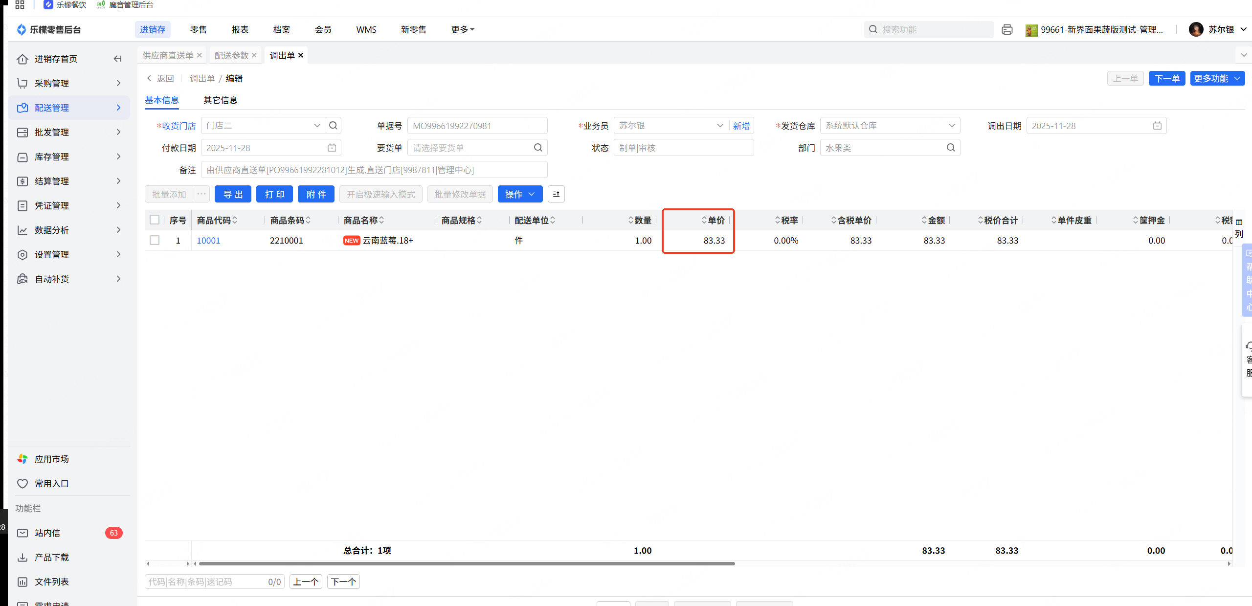 勾选后,供应商直送单生成的调出单,配送单价取供应商直送单里的配送单价