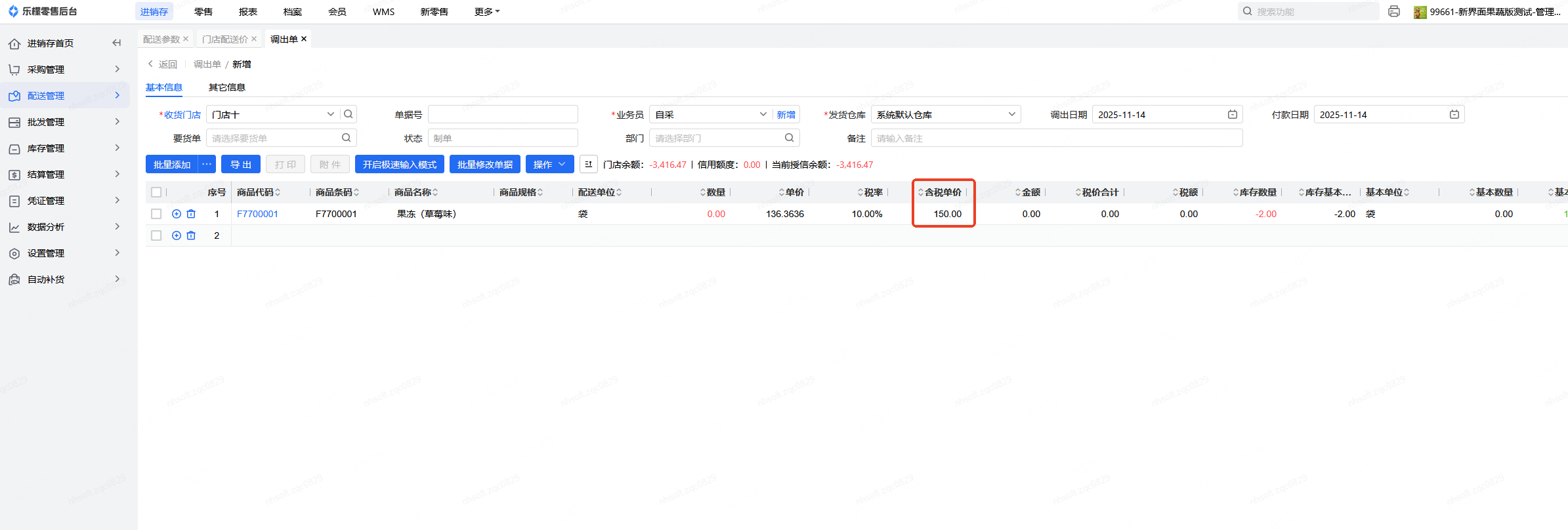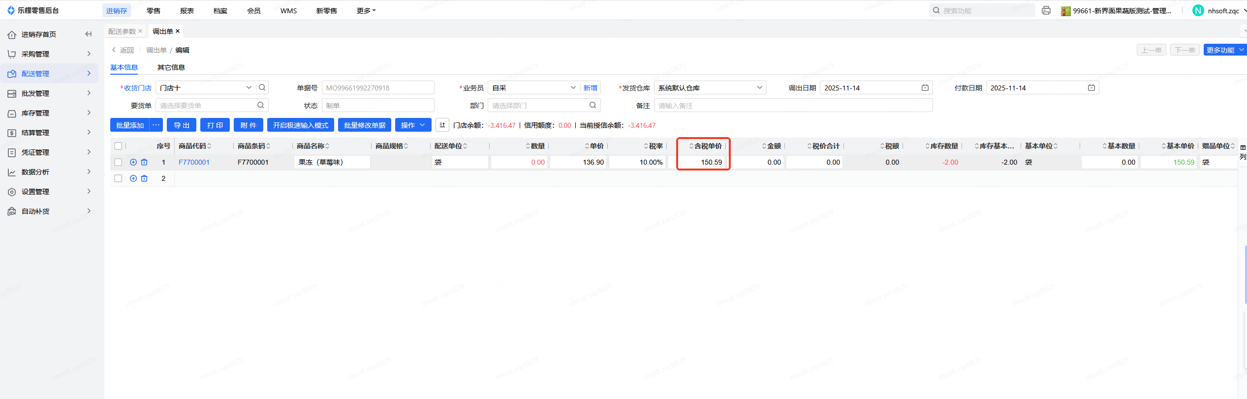 设置后,调出单、要货单的单价在设置的基础上根据设置进行四舍五入