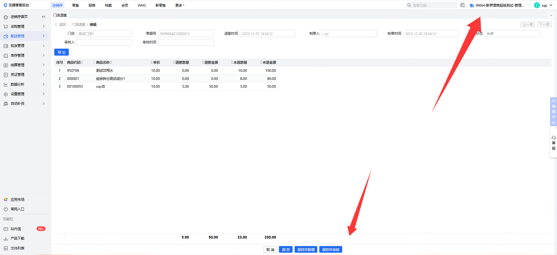 管理中心账号,点击门店退筐,找到门店退筐的单据,点击审核及完成门店退筐操作