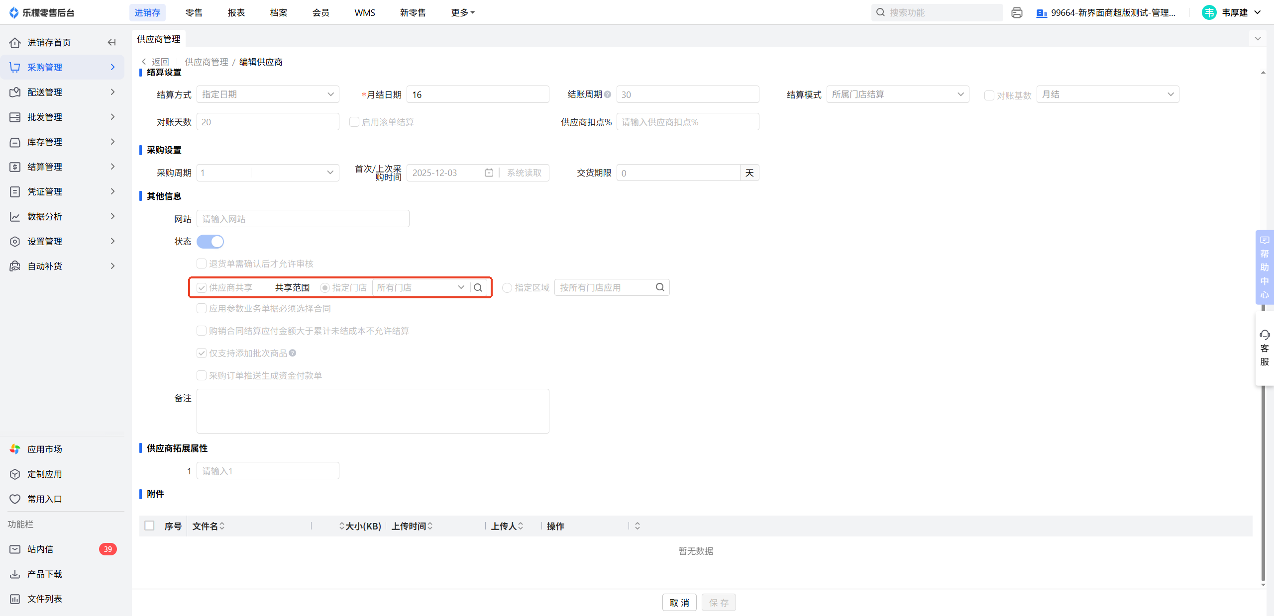 3.进销存-采购管理-供应商管理,供应商共享门店包含此门店