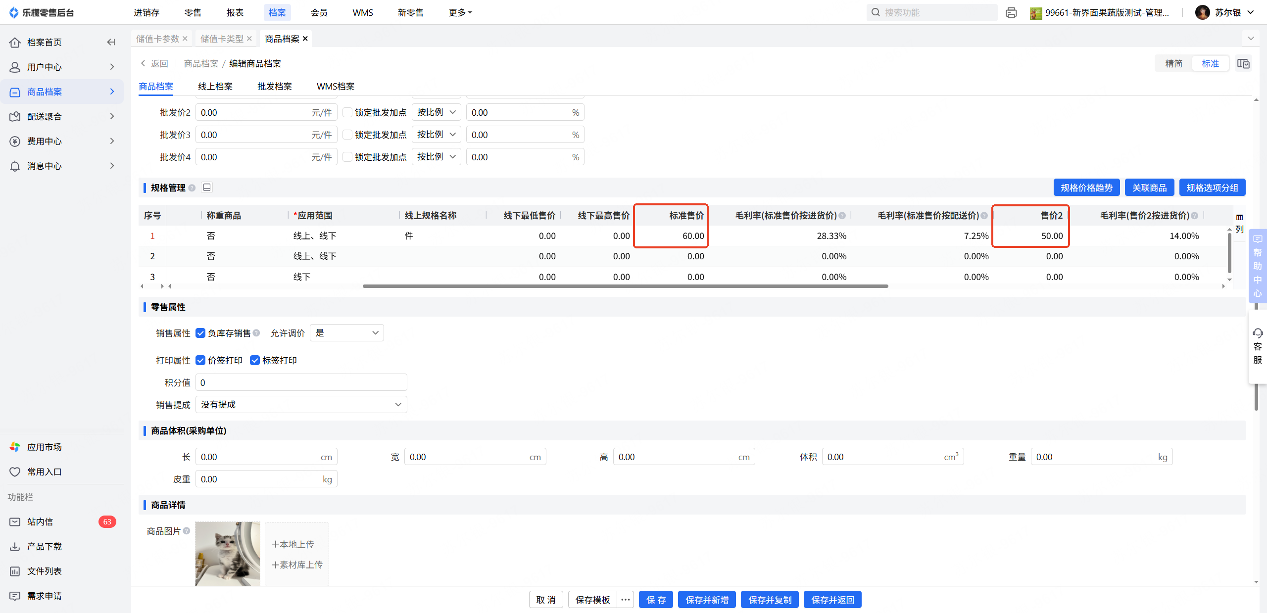 标准售价:20,售价2:15 卡类型消费折扣:标准售价*0.98,前台录入商品时最终金额等于19.6元