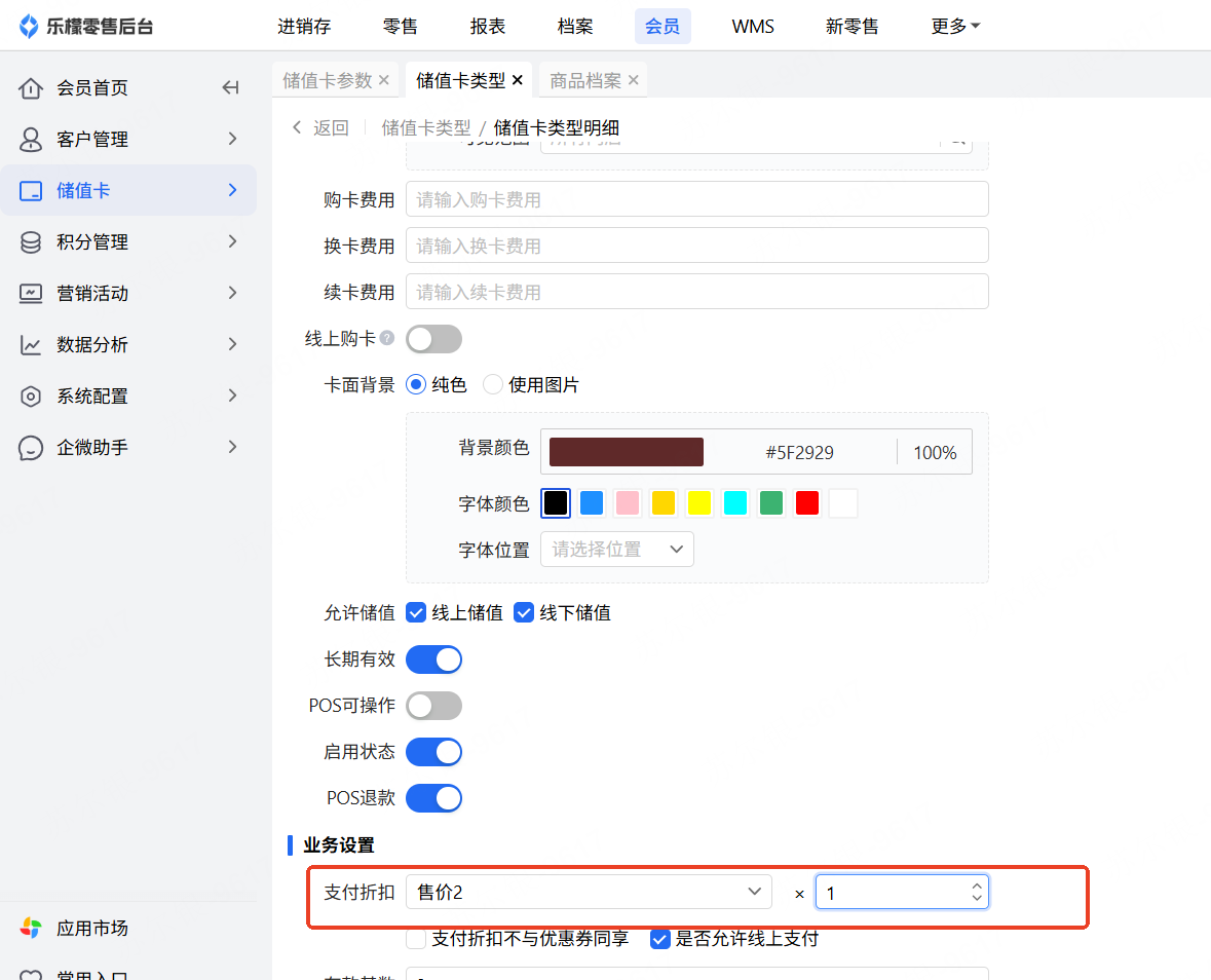 👉【操作路径】:·会员-储值卡-储值卡参数