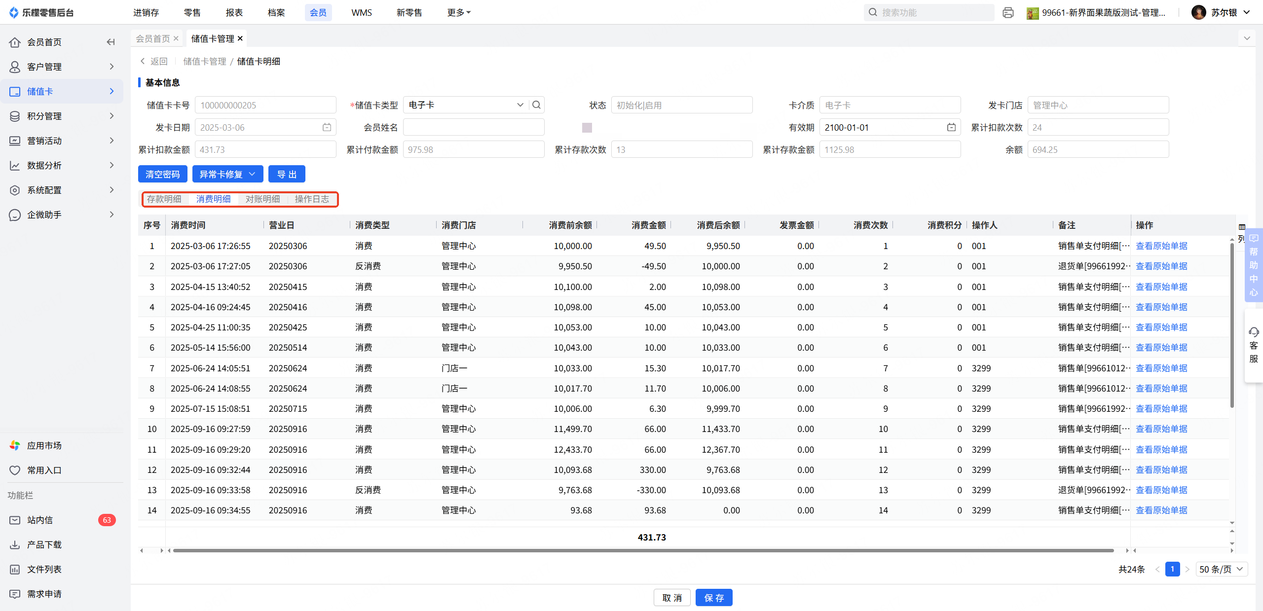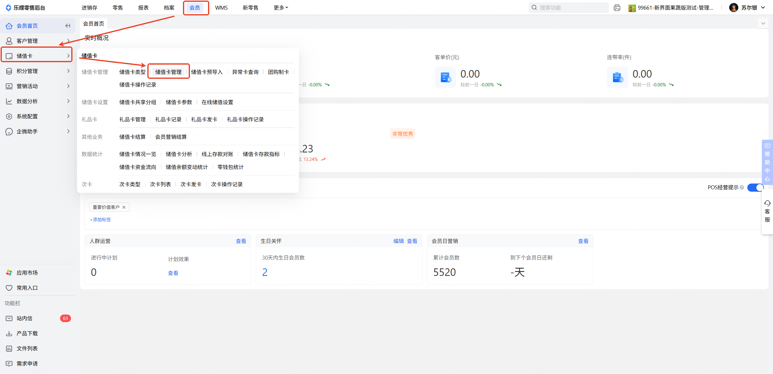 👉【操作路径】:·会员-储值卡-储值卡管理