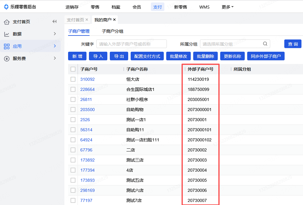 外部子商户号 | 乐檬支付-应用-我的商户-外部子商户号 |