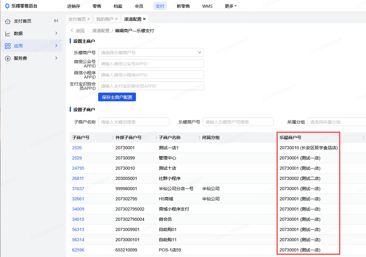 商户号 | 乐檬支付-应用-渠道配置-乐檬支付-乐檬商户号 |