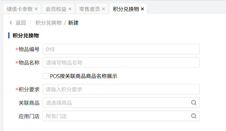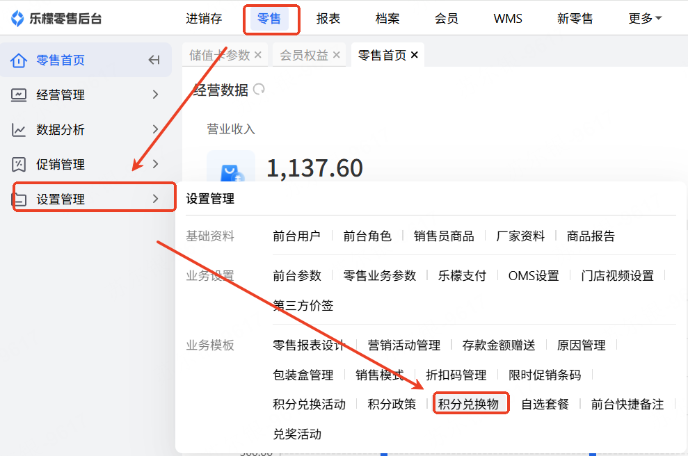 👉【操作路径】:·零售-设置管理-积分兑换物