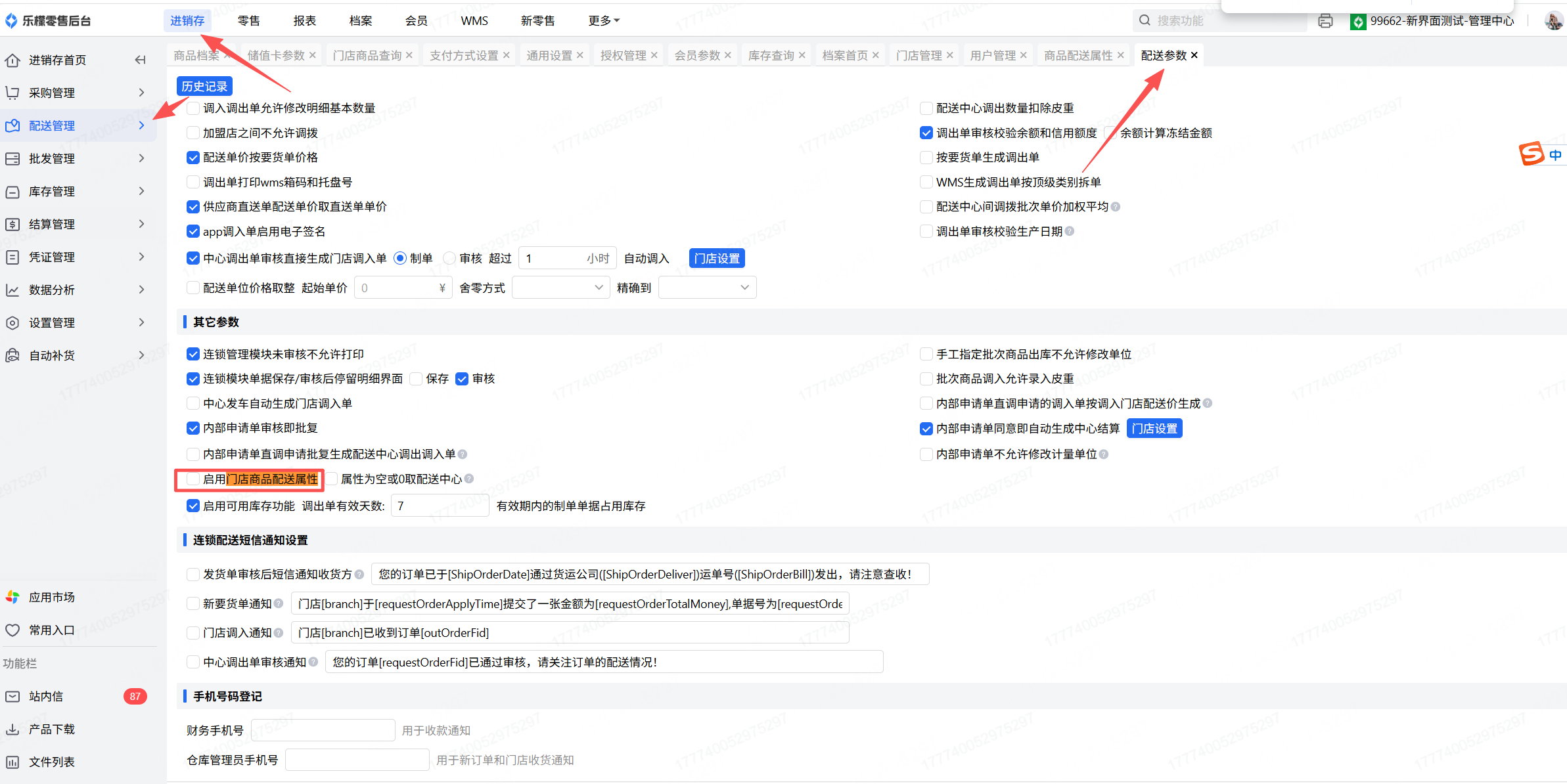 👉【操作路径】:进销存-配送管理-商品配送属性
