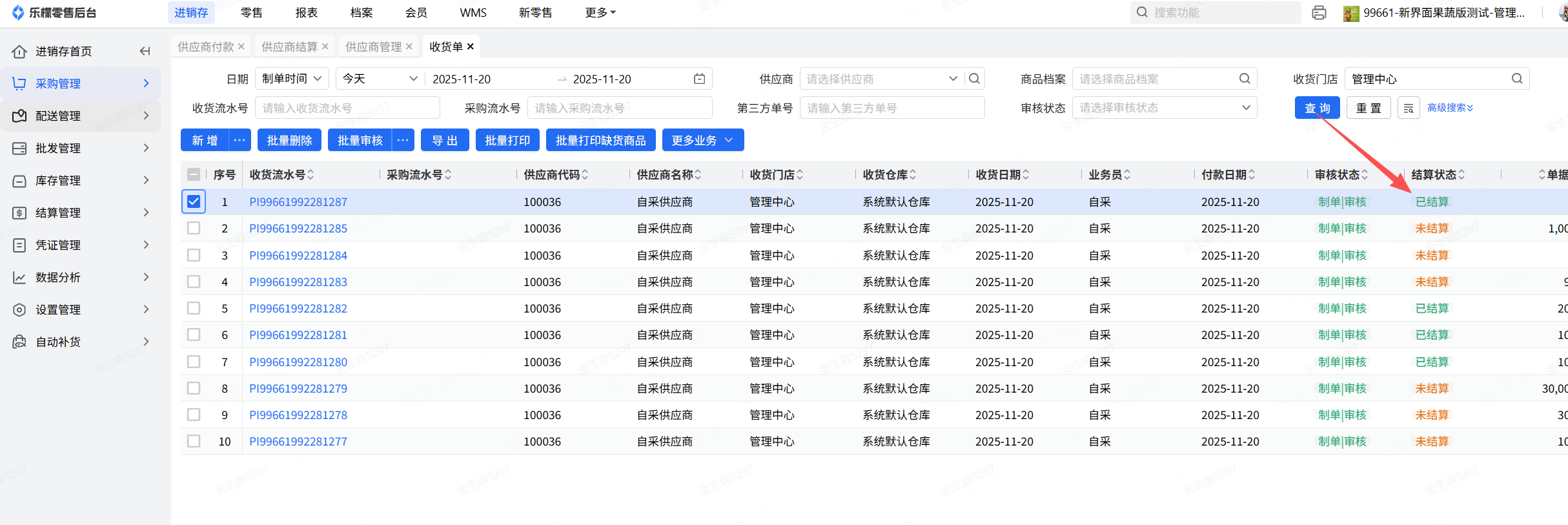 3.已结算的单据会过滤,0金额的业务单据自动会变为已结算状态
