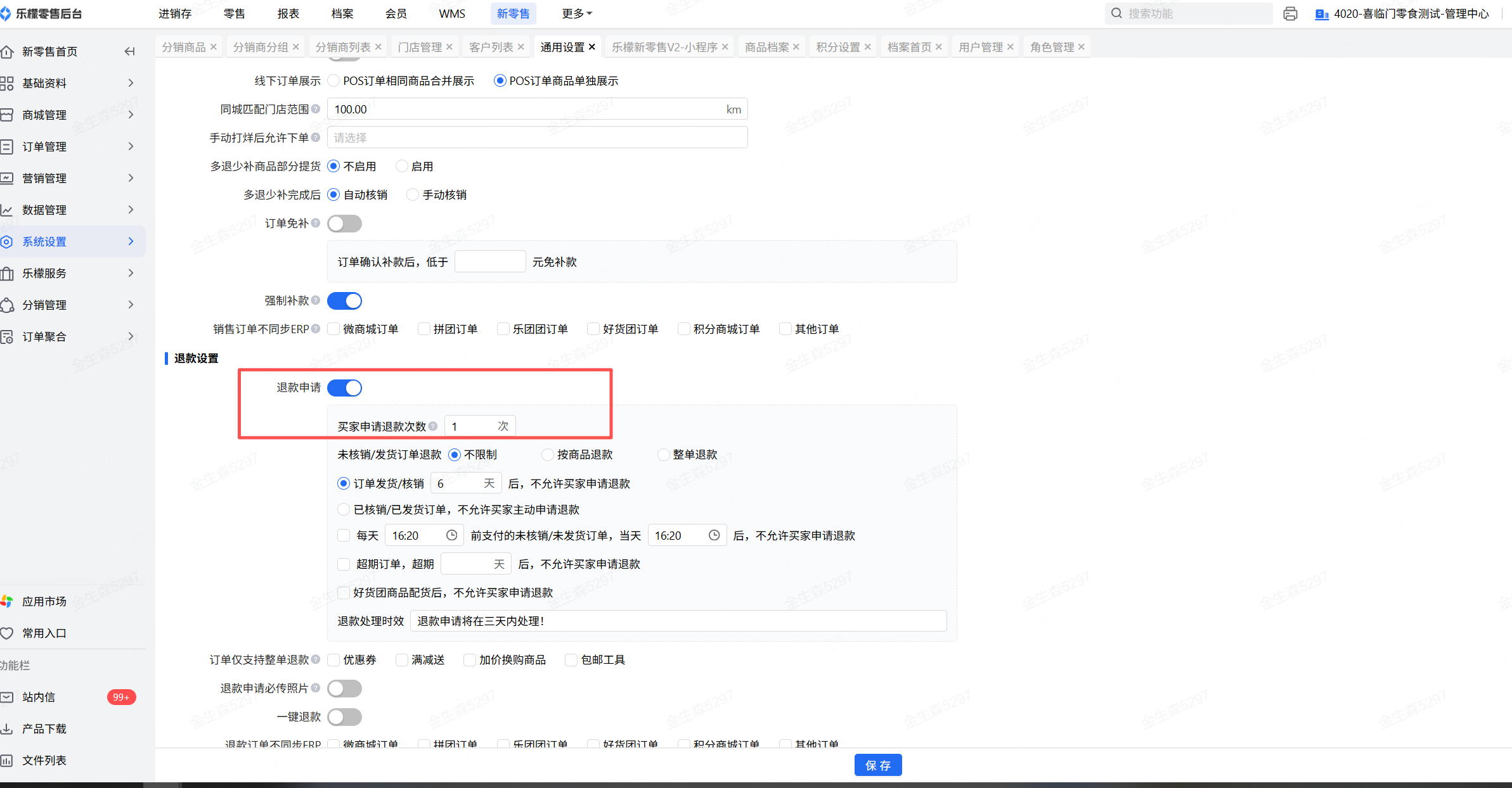 👉【操作路径】:·系统设置-通用设置-买家申请退款次数